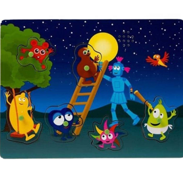 Kombinationen av tydliga träfigurer och ljudstimulans gör pusslet till en fin introduktion till språkutveckling. De robusta bitarna är anpassade för små händer och tål många timmars nyfiken lek – perfekt för barn som älskar Babblarna eller vill utforska språk på ett lustfyllt sätt.