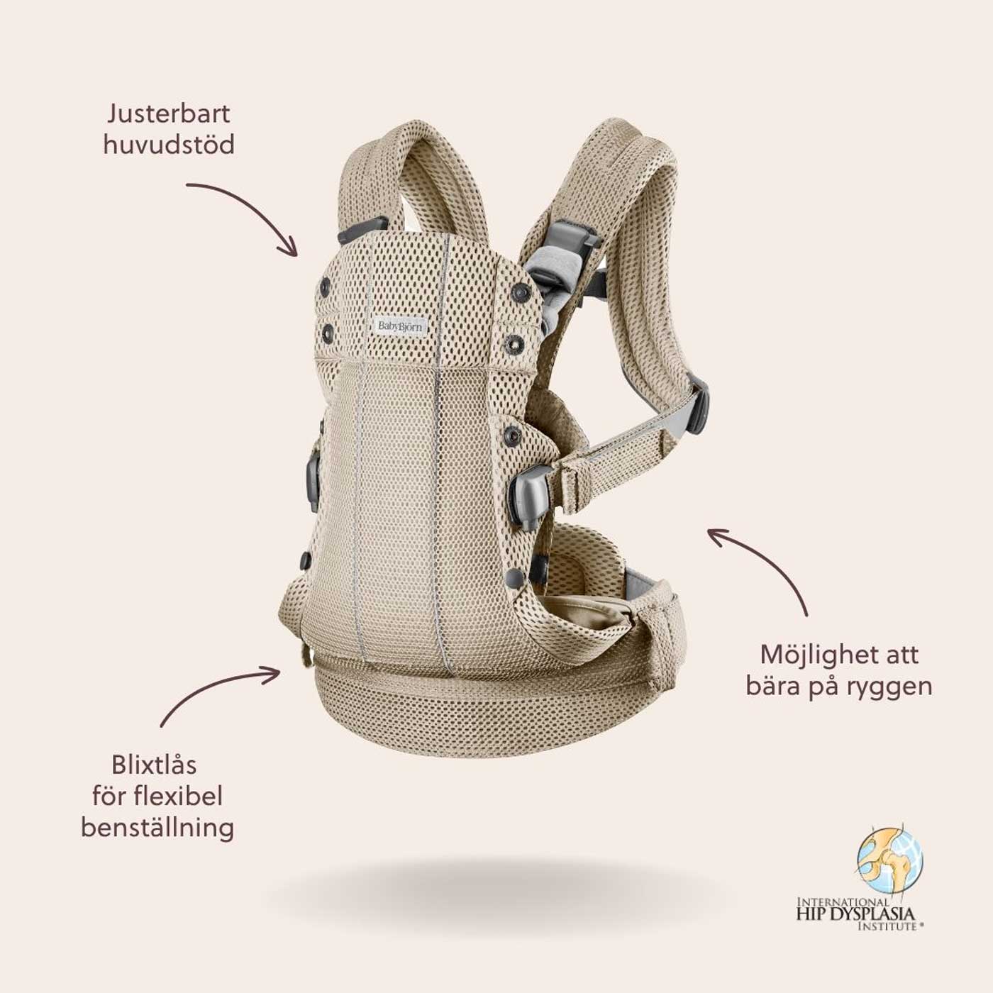 Babybjörns unika 3D-mesh är ett funktionellt material som både är mjukt, följsamt och stadigt. Det formar sig mjukt kring ditt barns kropp, och ger rätt stöd till rygg, nacke och höfter. Bärsele Harmony är dessutom Babybjörns svalaste bärsele: eftersom meshtyget släpper igenom mycket luft är den sval och skön att bära i även i varmare temperaturer.