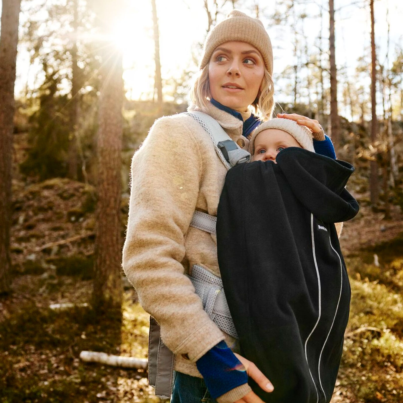 Överdraget är utformat för att enkelt fästas utanpå bärselen och skapar ett skyddande lager runt barnet. Det vindtäta och vattenavvisande yttertyget håller väder och vind borta, medan den mjuka insidan ger en varm och ombonad känsla. Designen gör att barnet kan lyftas i och ur utan att överdraget behöver tas av – smidigt i vardagen när tempot växlar. Kan användas vid både inåt- och framåtvänd bärposition.