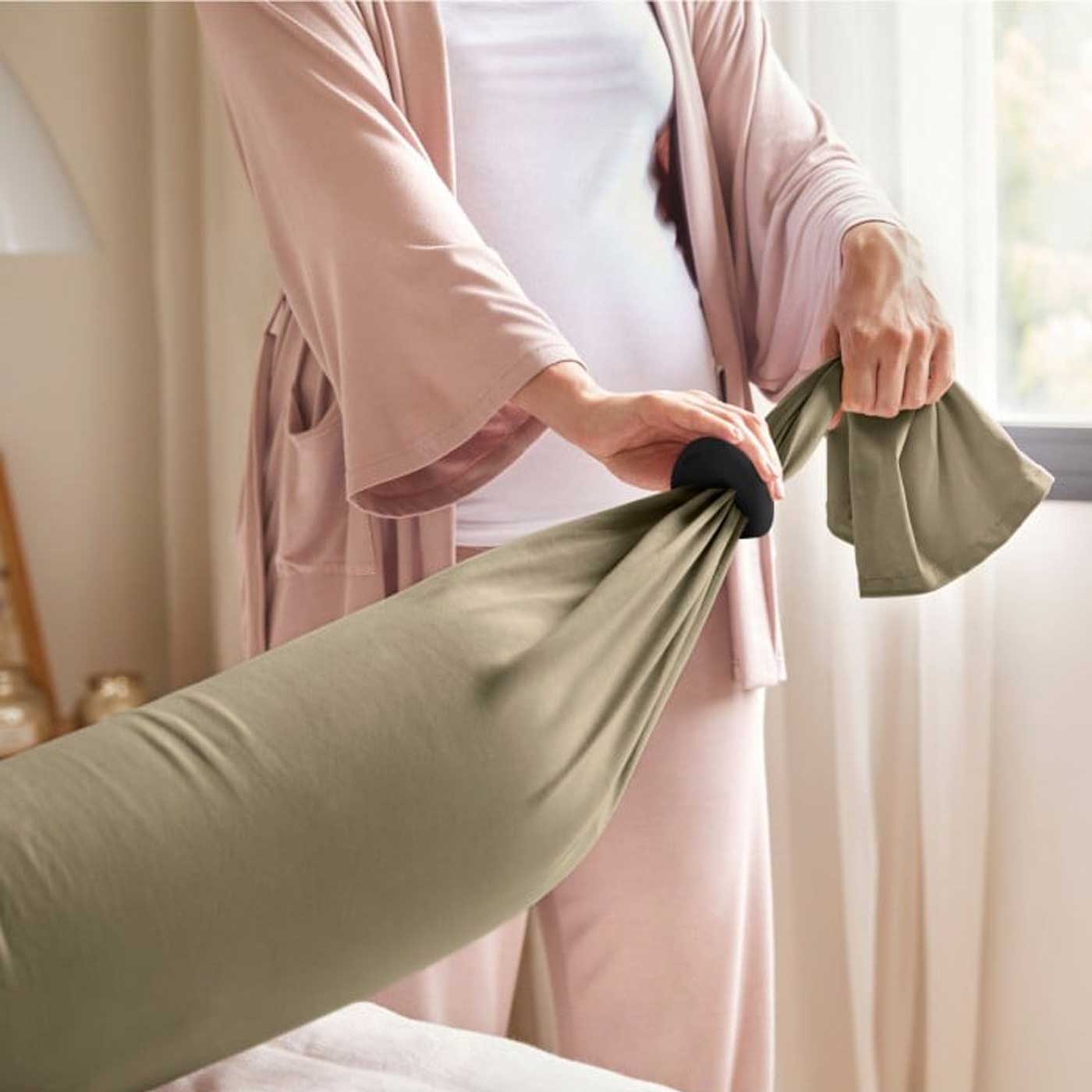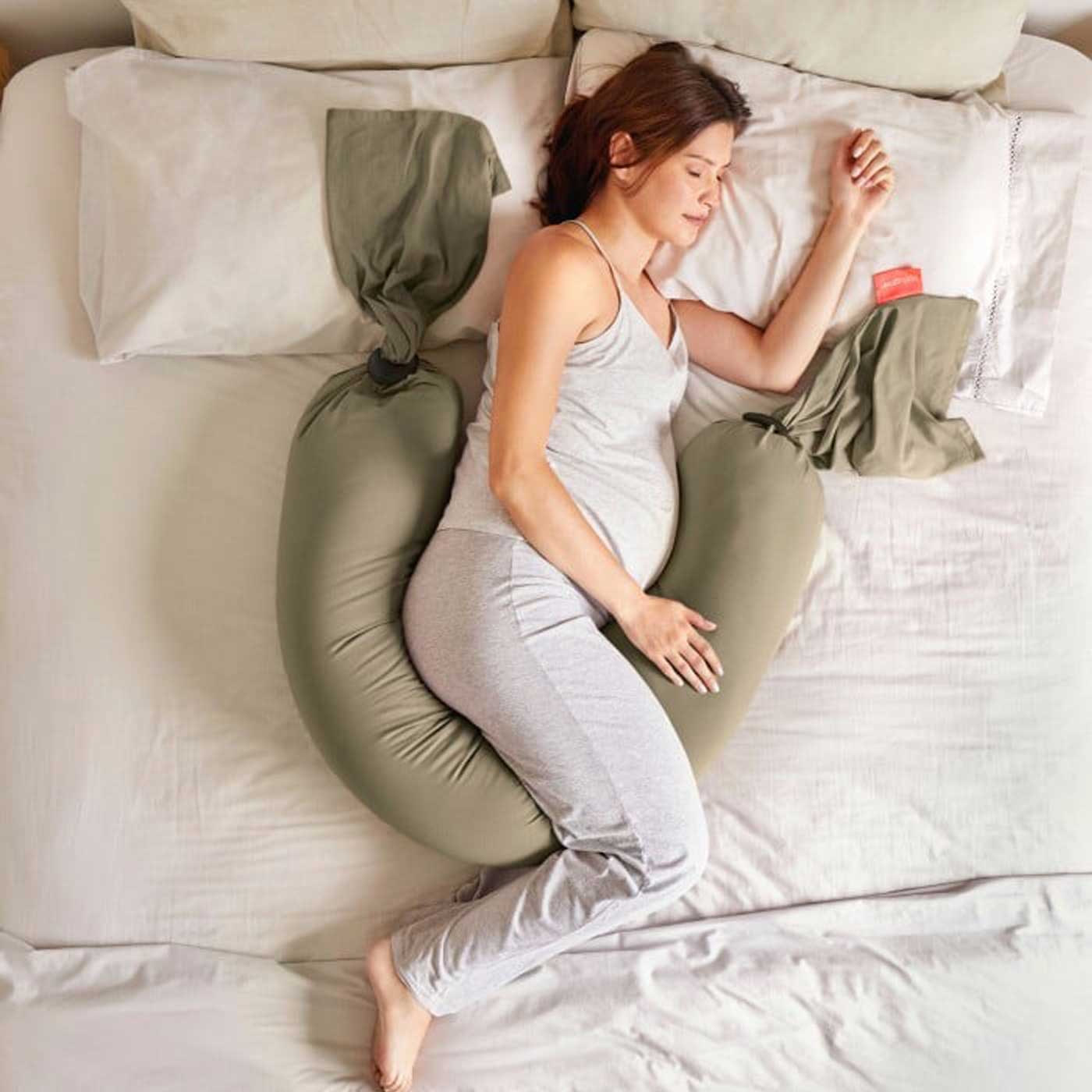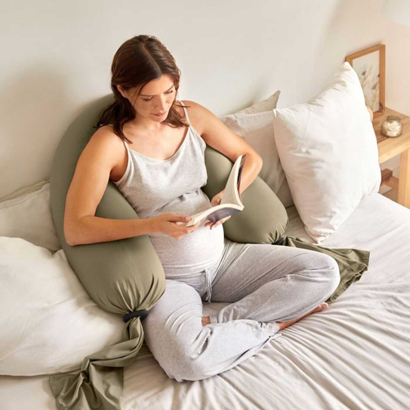 Bbhugme Gravid/Amningskudde Dusty Olive Black är kudden som stöder och växer med dig och din baby under graviditet, amning och kvalitetstid (t.ex. kel och lek) med din baby.