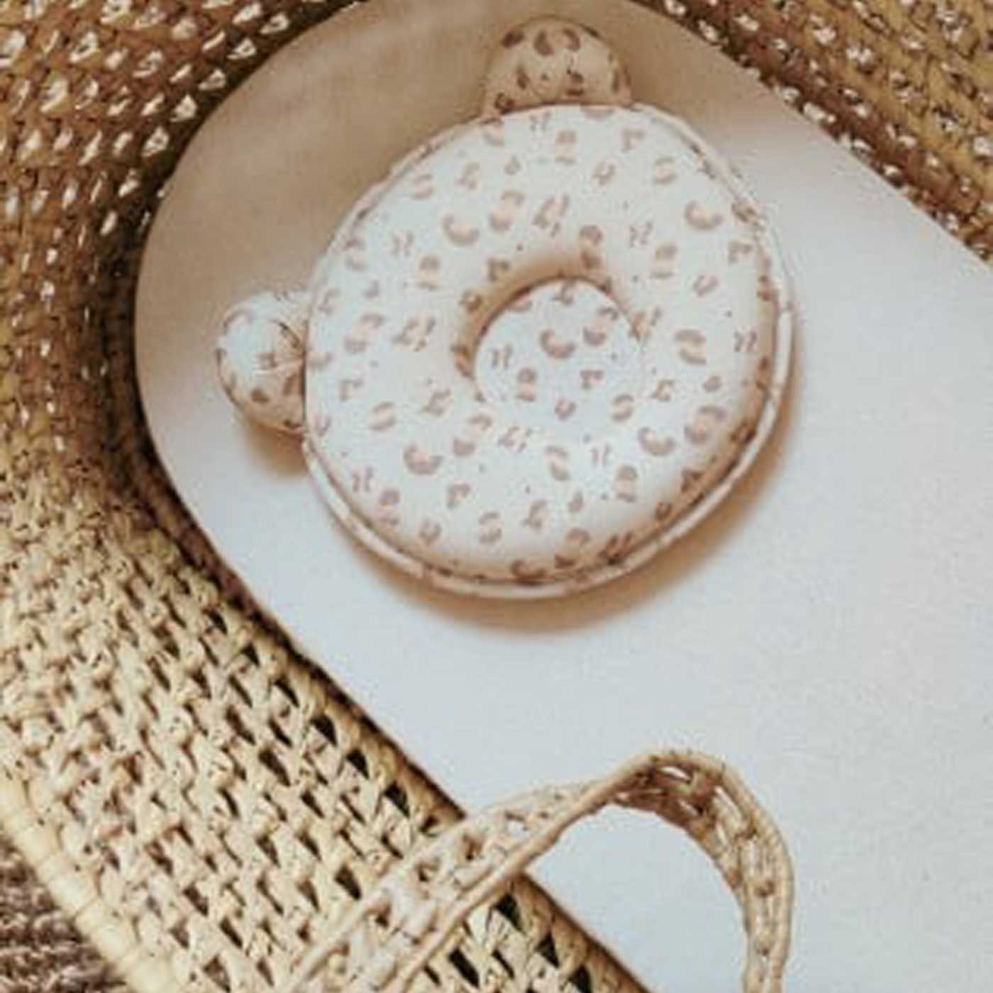 Barnkudden är i bomullsfrotté och används med fördel överallt där barnet ligger på rygg. Materialet på kudden gör att den även ligger stabilt på plats i babysitters eller bilbarnstol med lätt lutning.