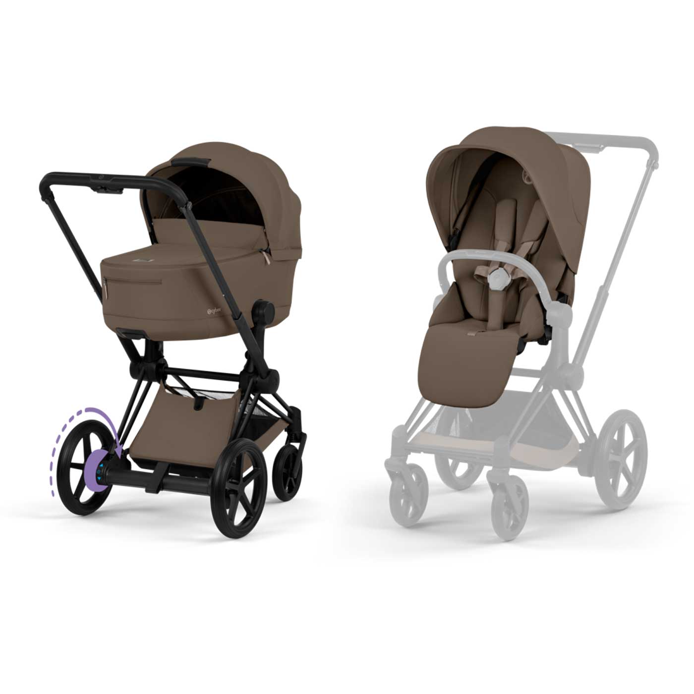 Cybex E-Priam är en Travel System-kompatibel duovagn som växer med ditt barn. Du växlar enkelt mellan: