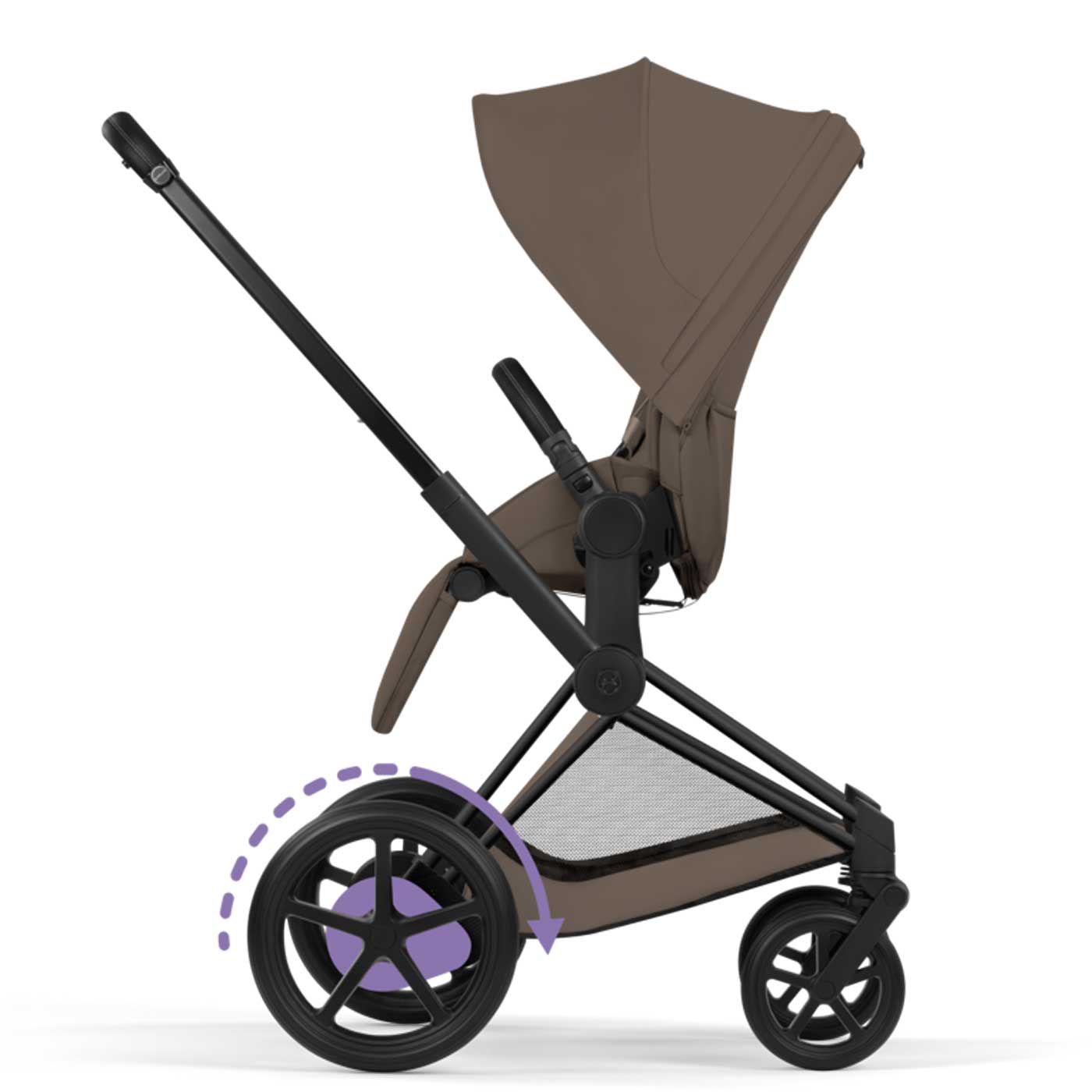 Upptäck den exklusiva och eldrivna duovagnen Cybex E-Priam i en stilren brun look med bruna textiler, mattsvart chassi och svarta detaljer. Barnvagnen är skapad för dig som vill ha det lilla extra i vardagen, med genomtänkta detaljer, smidig hantering och en look som sticker ut.