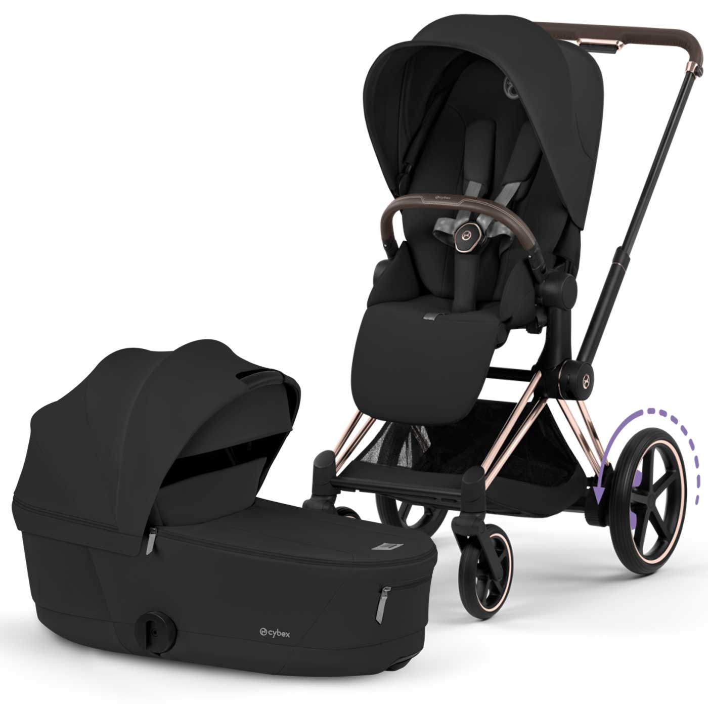 Cybex E-Priam är en Travel System-kompatibel duovagn som växer med ditt barn. Du växlar enkelt mellan: