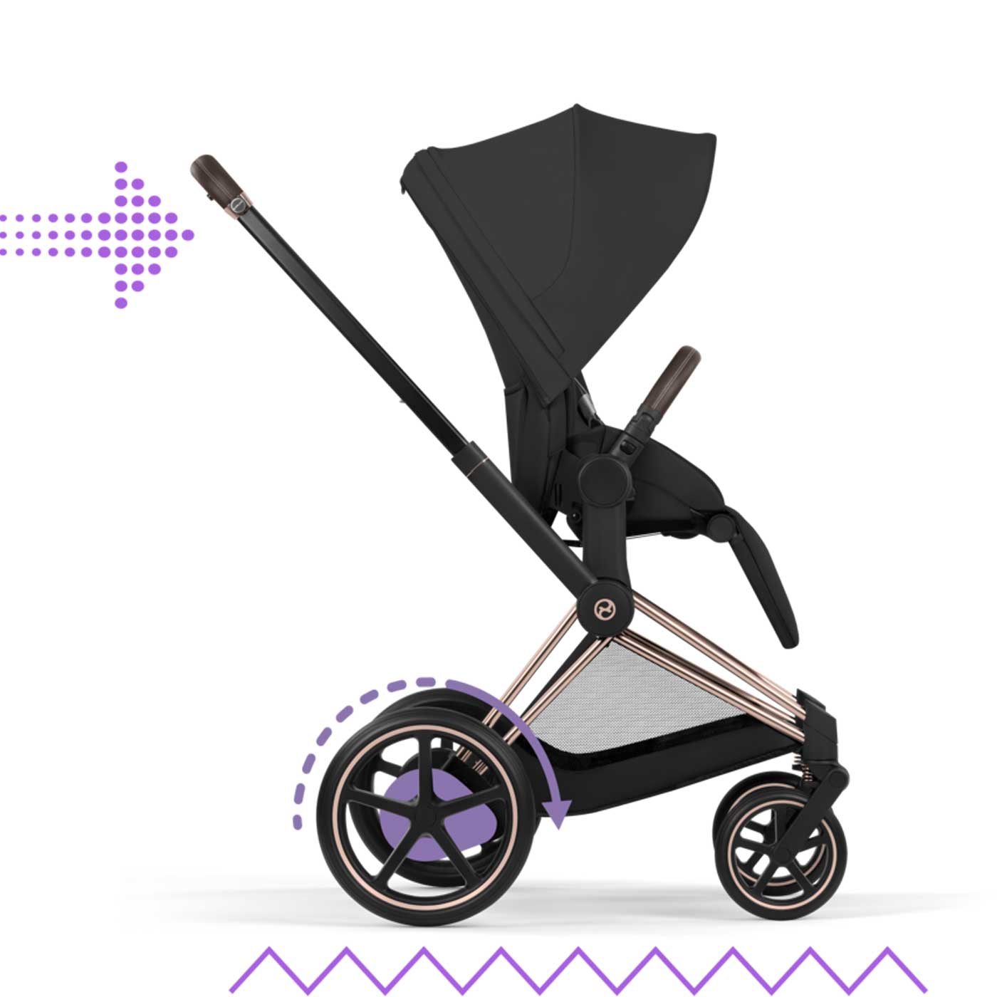 Oavsett om du promenerar i stan eller på ojämna underlag får du en mjuk och stabil körupplevelse: