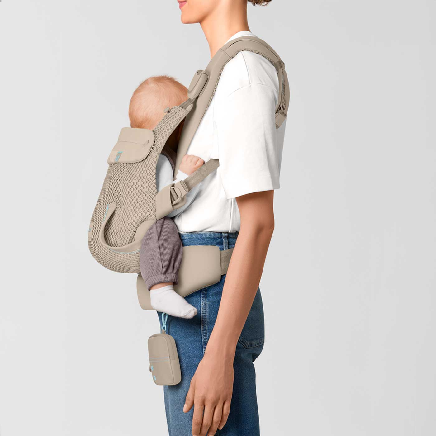 Bärselen är tillverkad i ventilerande meshmaterial som ger god luftcirkulation. Det hjälper både dig och barnet att hålla en behaglig temperatur under promenader, resor eller vardagens alla små äventyr.
