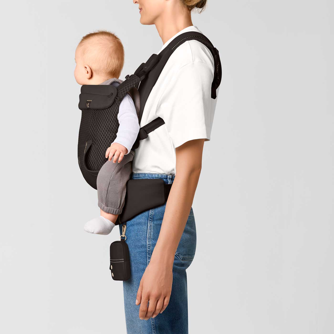 Bärselen är tillverkad i ventilerande meshmaterial som ger god luftcirkulation. Det hjälper både dig och barnet att hålla en behaglig temperatur under promenader, resor eller vardagens alla små äventyr.