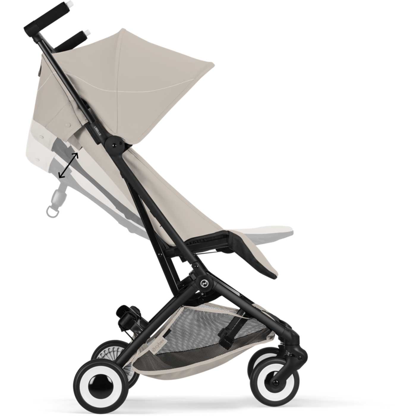 Libelle är kompatibel med Cybex babyskydd, vilket gör att du enkelt kan klicka fast bilbarnstolen direkt på vagnens chassi (adapter säljs separat).