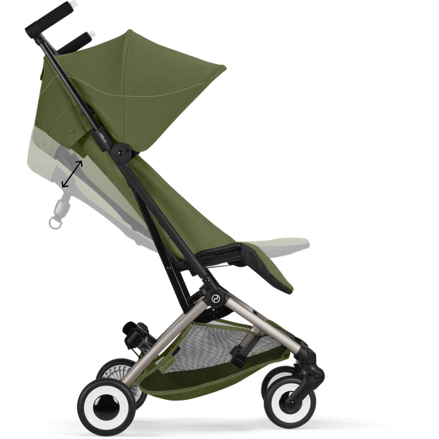 Libelle är kompatibel med Cybex babyskydd, vilket gör att du enkelt kan klicka fast bilbarnstolen direkt på vagnens chassi (adapter säljs separat).