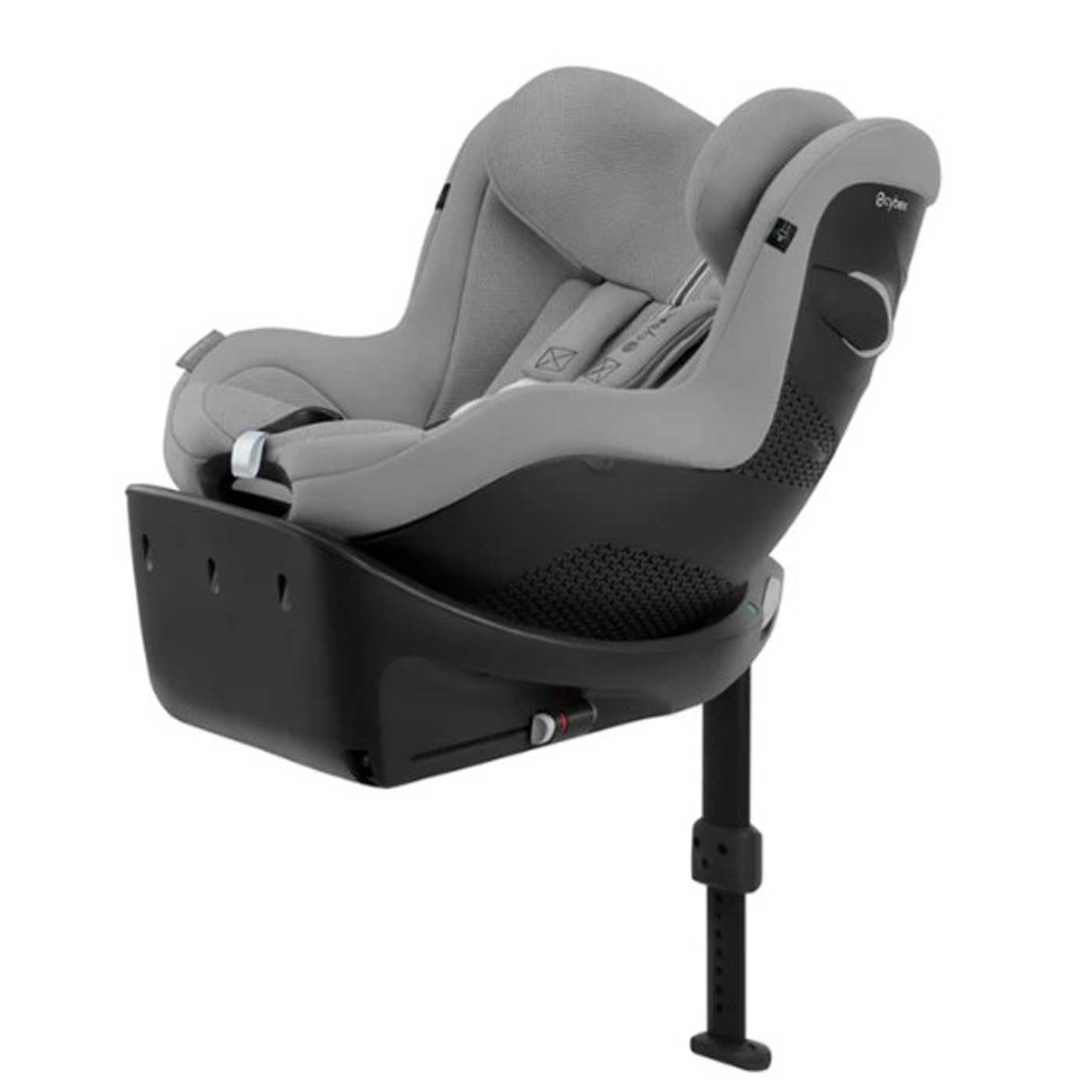 Stolen integreras med Isofix-basen och har indikatorer som visar när den är korrekt monterad. Den har även fem lutningslägen som kan justeras under färd för optimal komfort.