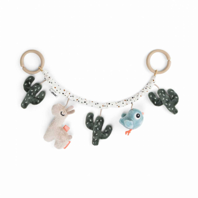 Ett charmigt barnvagnshänge från Done by Deer med två mjuka figurer – en liten fågel och en söt giraff. Hänget stimulerar barnets motorik, syn och hörsel och bjuder samtidigt in till lek och nyfiken utforskning.
