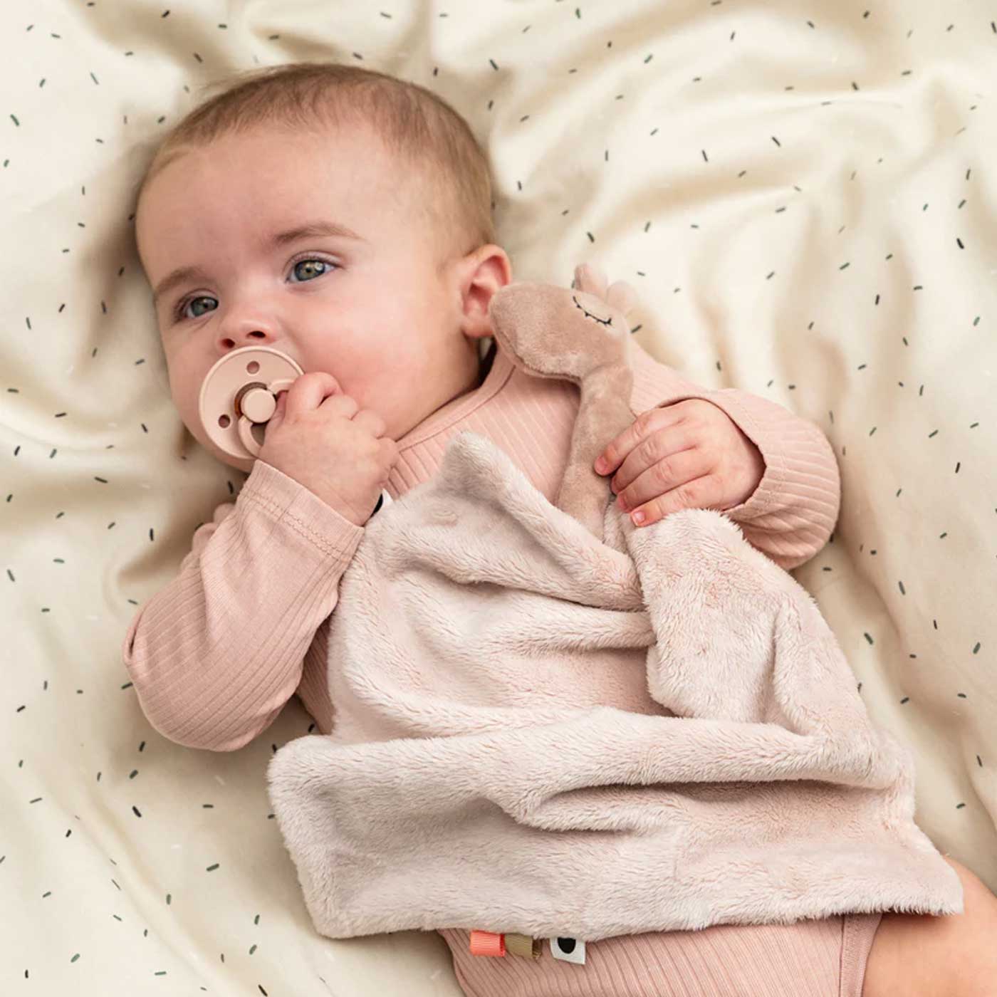 Denna supermjuka snuttefilt från Done By Deer är skapad för att ge barnet en känsla av trygghet, lugn och närhet redan från allra första dagen. Snuttefilten har en praktisk napphållare med kardborre som gör det enkelt att fästa napp eller bitring, så att barnets favorit alltid finns nära till hands. De olika materialen, mjuka etiketterna och varierande texturerna bjuder in till stillsam lek och stimulerar barnets sinnen på ett tryggt och lekfullt sätt.