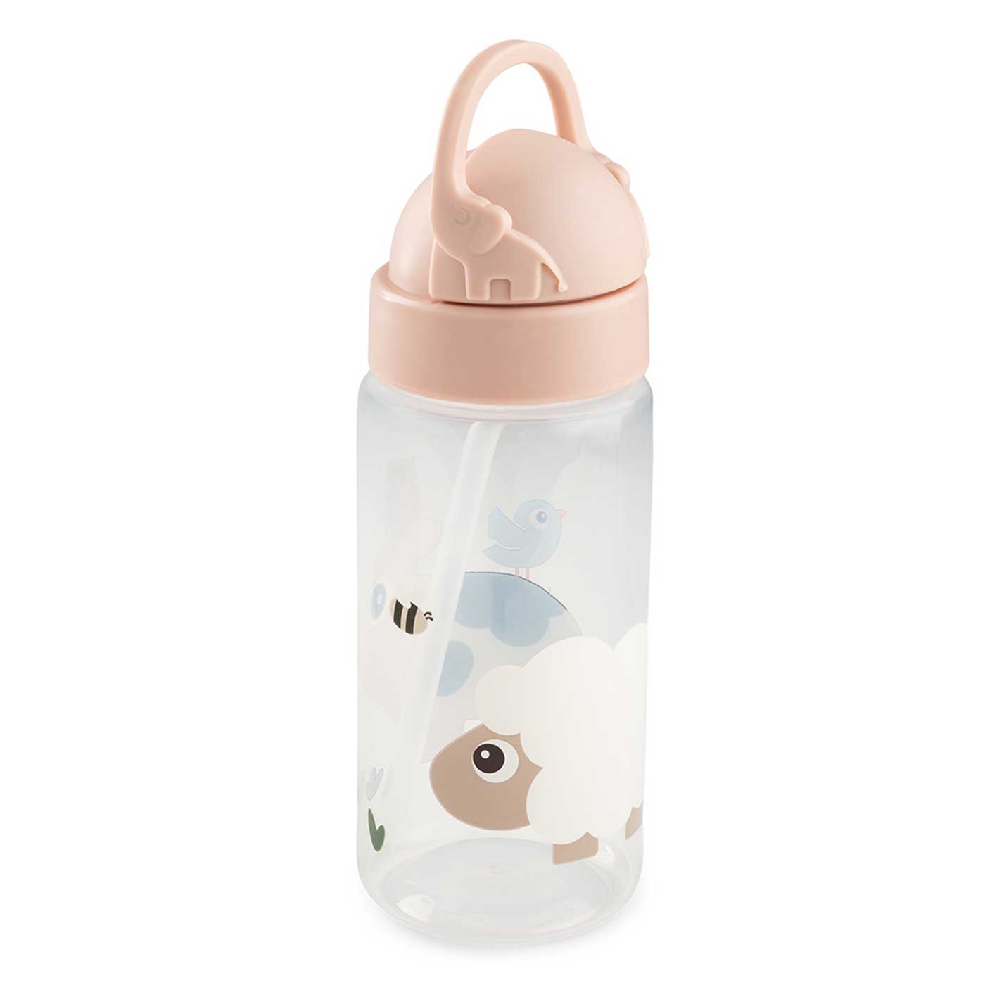 Done By Deer Vattenflaska med sugrör Tiny Farm Rosa