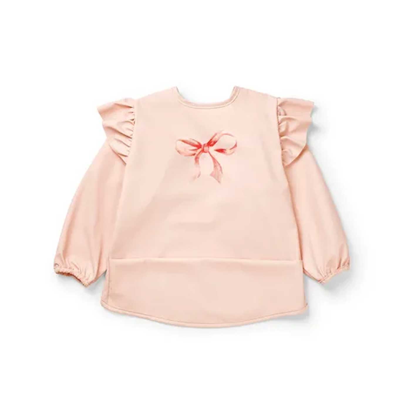 Elodie Långärmad Haklapp Rosy Bow är en mycket händig haklapp att ha för dig som gillar annat än att tvätta kläder. De långa armarna ger heltäckande skydd både vid matbordet och under kreativ lek och pyssel. Haklappen fästs smidigt i nacken med ett mjukt kardborreband och det vattenavvisande materialet gör haklappen enkel att hålla ren.