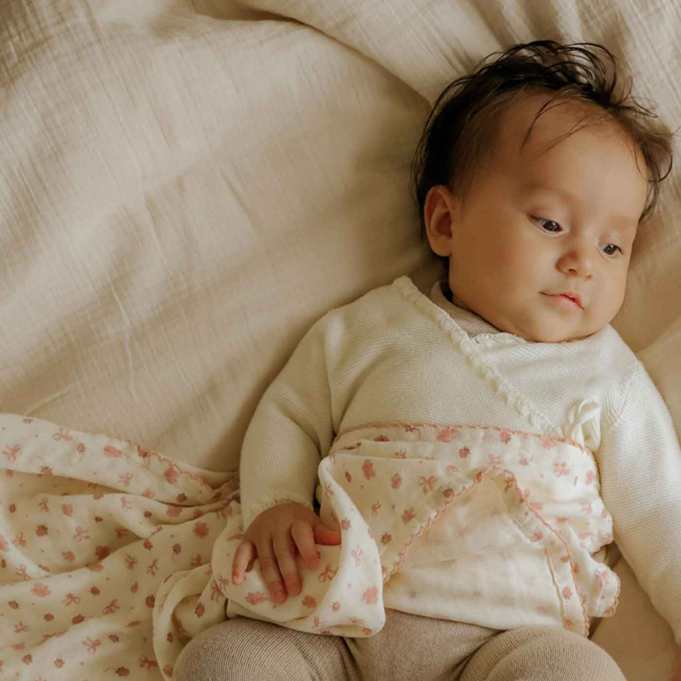 Den dubbelskiktade muslinväven håller filten lätt och luftig samtidigt som den effektivt absorberar fukt, vilket gör den perfekt året runt.