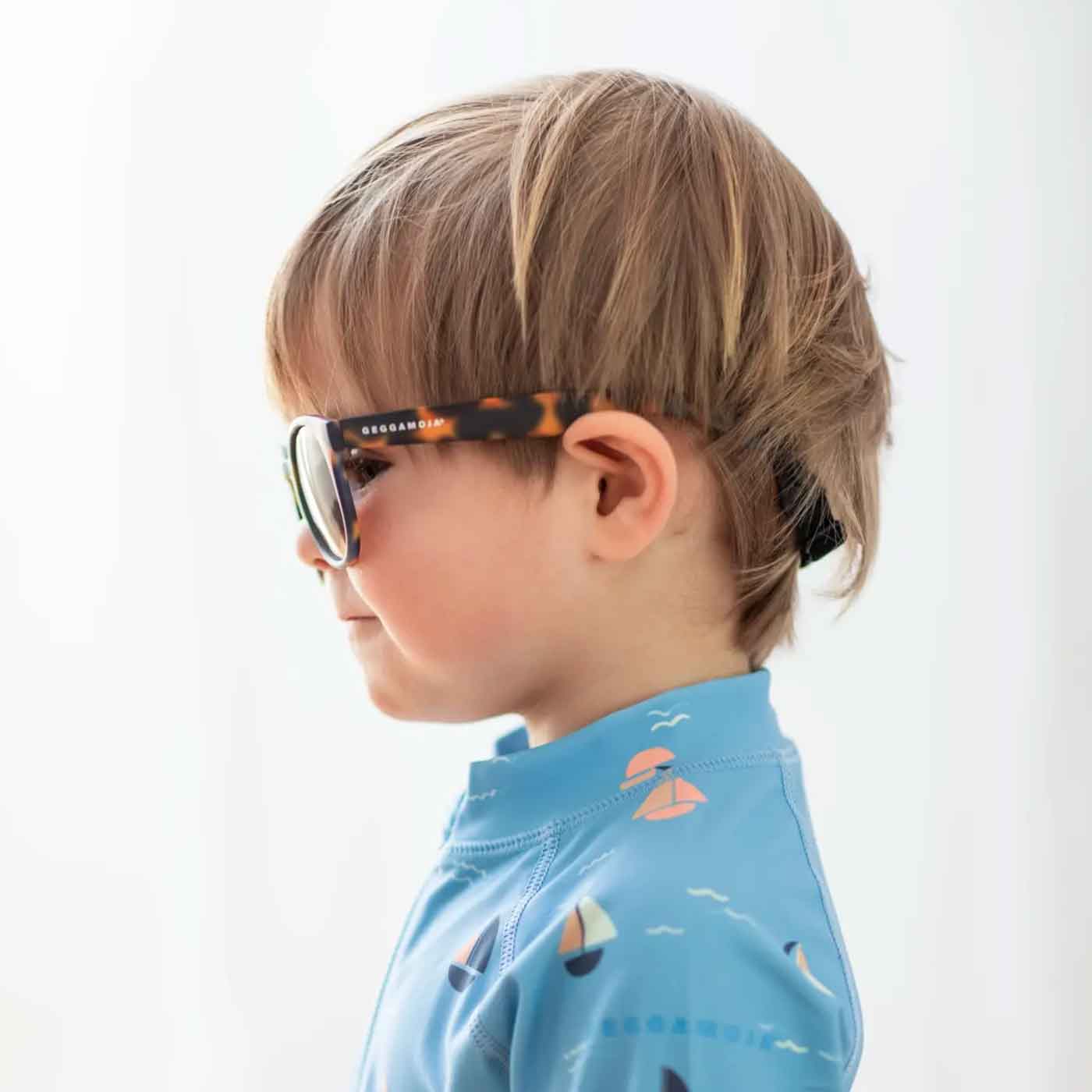 Geggamoja Solglasögon Barn Brun 2-6 år har snodd i resår som är smidigt att sätta runt huvudet och är bekvämt för ditt barn att bära. Snodden är både avtagbar och reglerbar genom spännena längst ut på skalmarna, vilket ger perfekt passform. Solglasögon sitter på plats så att ditt barn kan röra sig för fullt utan att glasögonen ramlar av.