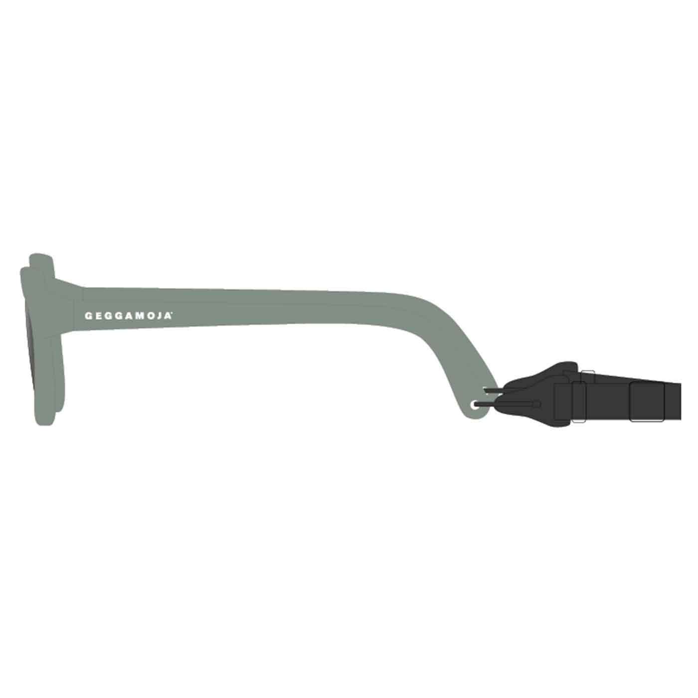 Geggamoja Solglasögon Barn Mossgrön 2-6 år har snodd i resår som är smidigt att sätta runt huvudet och är bekvämt för ditt barn att bära. Snodden är både avtagbar och reglerbar genom spännena längst ut på skalmarna, vilket ger perfekt passform. Solglasögon sitter på plats så att ditt barn kan röra sig för fullt utan att glasögonen ramlar av.