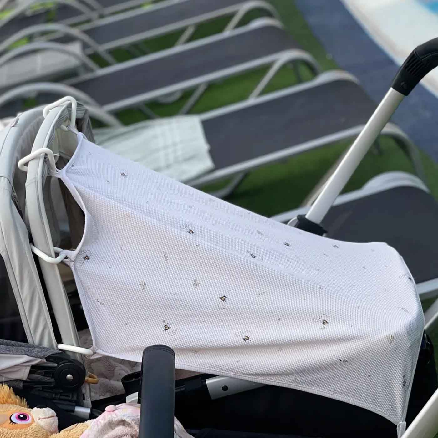 Geggamoja UV-gardin till vagn Sweet Nature är en smart och praktisk UV-gardin med UV-skydd 50+. UV-gardinen är tillverkad i polyamid och elastan som andas och är ett snabbtorkande material. Gardinen går att använda både på barnvagn och i bilstolen. UV-gardinen fästs enkelt med de medföljande plastringarna.