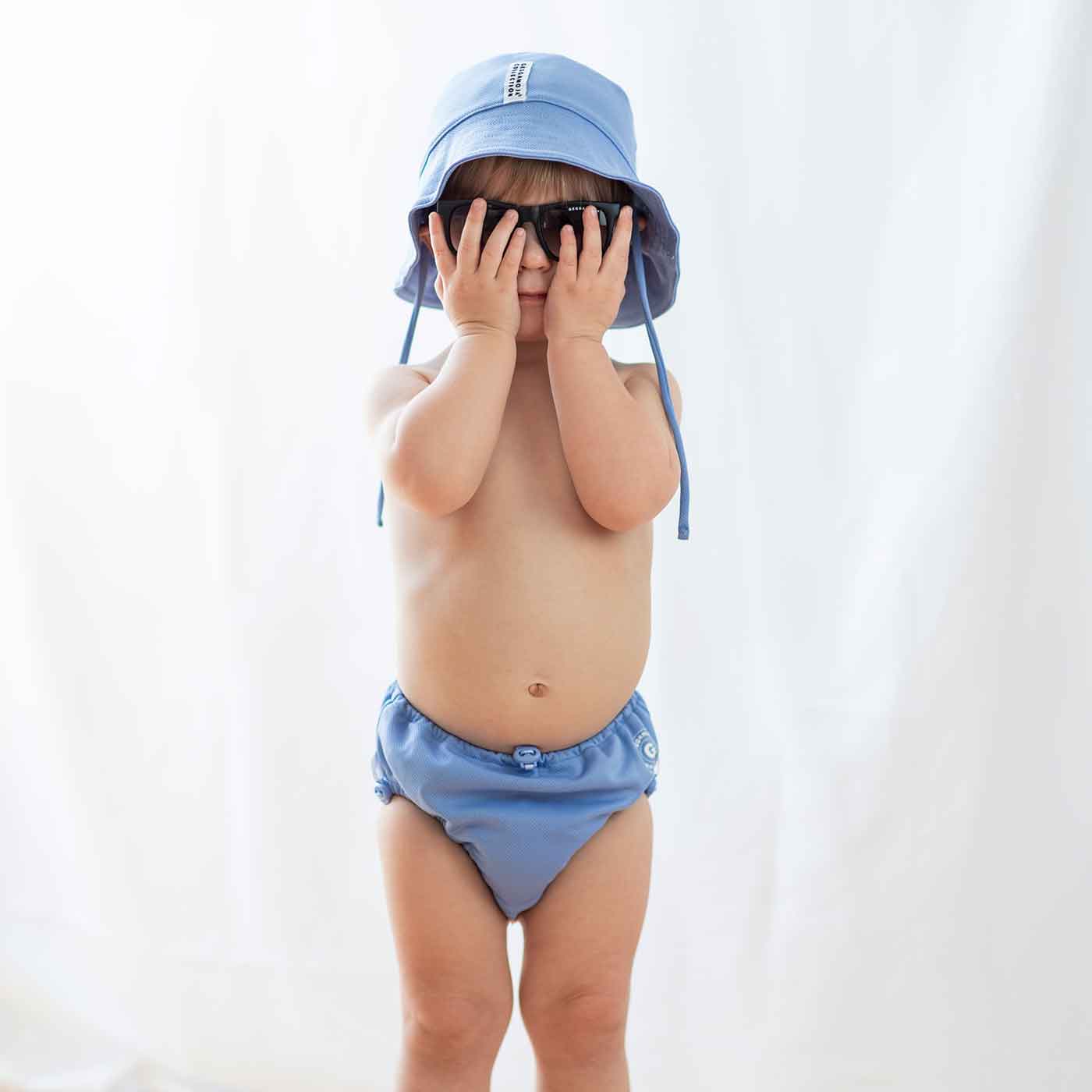 Skydda ditt barn från solen med en blå solhatt från Geggamoja! Solhatten har UV-skydd UPF 50+ och blockerar upp till 98 % av solens skadliga UVA- och UVB-strålar. Tillverkad i återvunnet material som andas och håller barnet svalt.