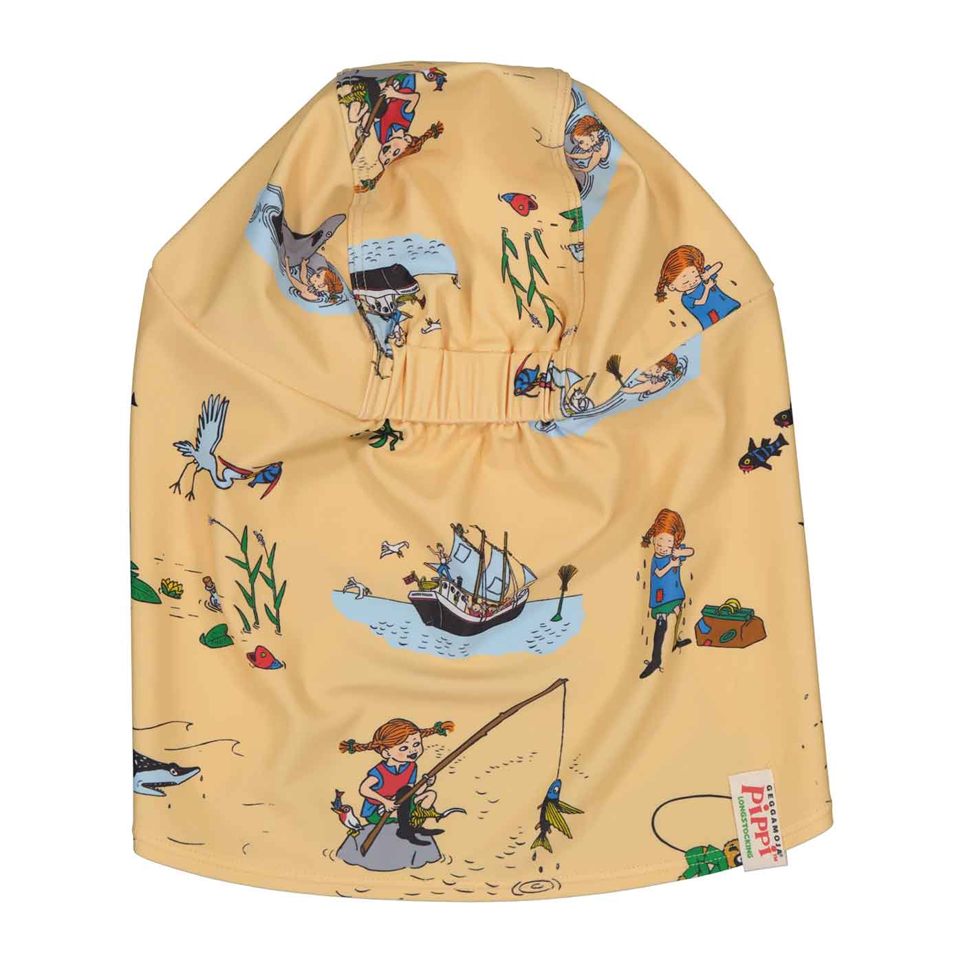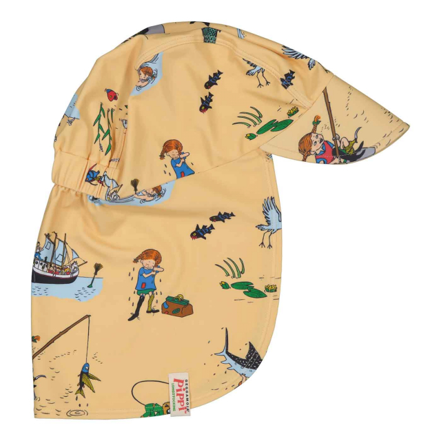 Skydda ditt barn från solen med en gul solkeps med Pippi-motiv från Geggamoja! Solkepsen har UV-skydd UPF 50+ och blockerar upp till 98 % av solens skadliga UVA- och UVB-strålar, perfekt för utelek, promenader eller på stranden.