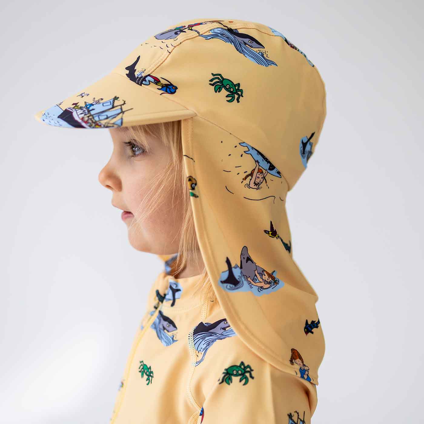 Solkepsen finns i flera fina färger och är fin att matcha med Geggamojas UV-dräkt (säljs separat).