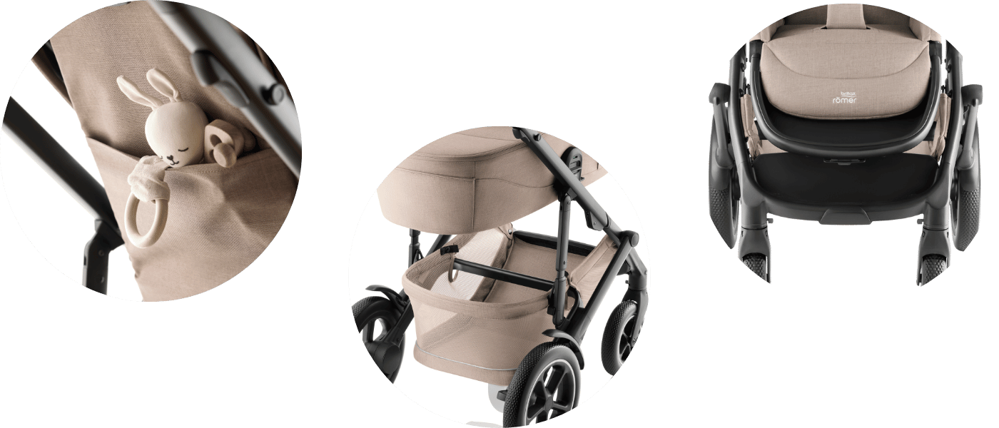 Varukorgen har fått en helt ny design, vilket gör den rymligare och mer lättåtkomlig. På chassits främre del har Smile 5Z fått ett inbyggt fotstöd, vilket ger barnvagnen längre användningstid och underlättar när ditt barn vill klättra i och ur vagnen själv.