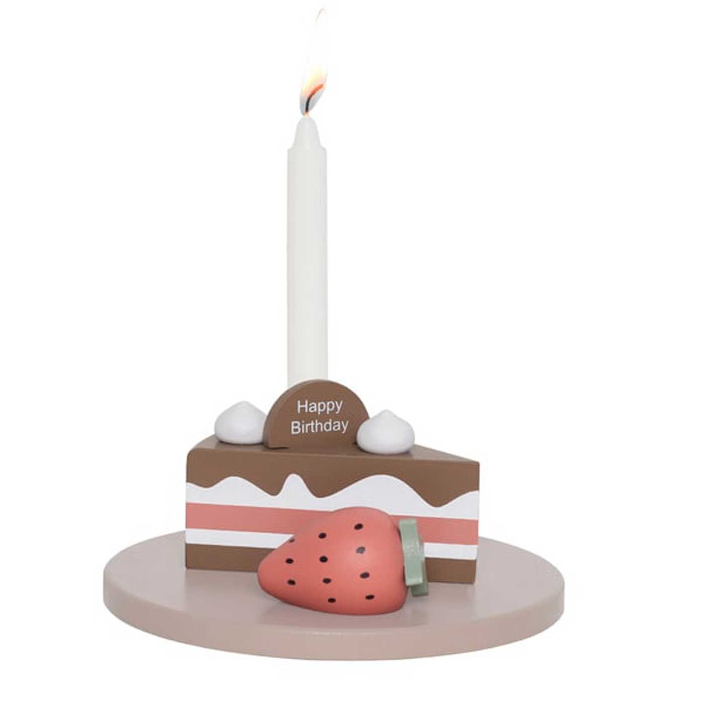 Gör födelsedagen extra minnesvärd med en ljusstake formad som en mumsig tårtbit, dekorerad med grädde och jordgubbe! Placera den på frukostbrickan eller mitt på kalasbordet och låt den bli en stående tradition vid varje firande.