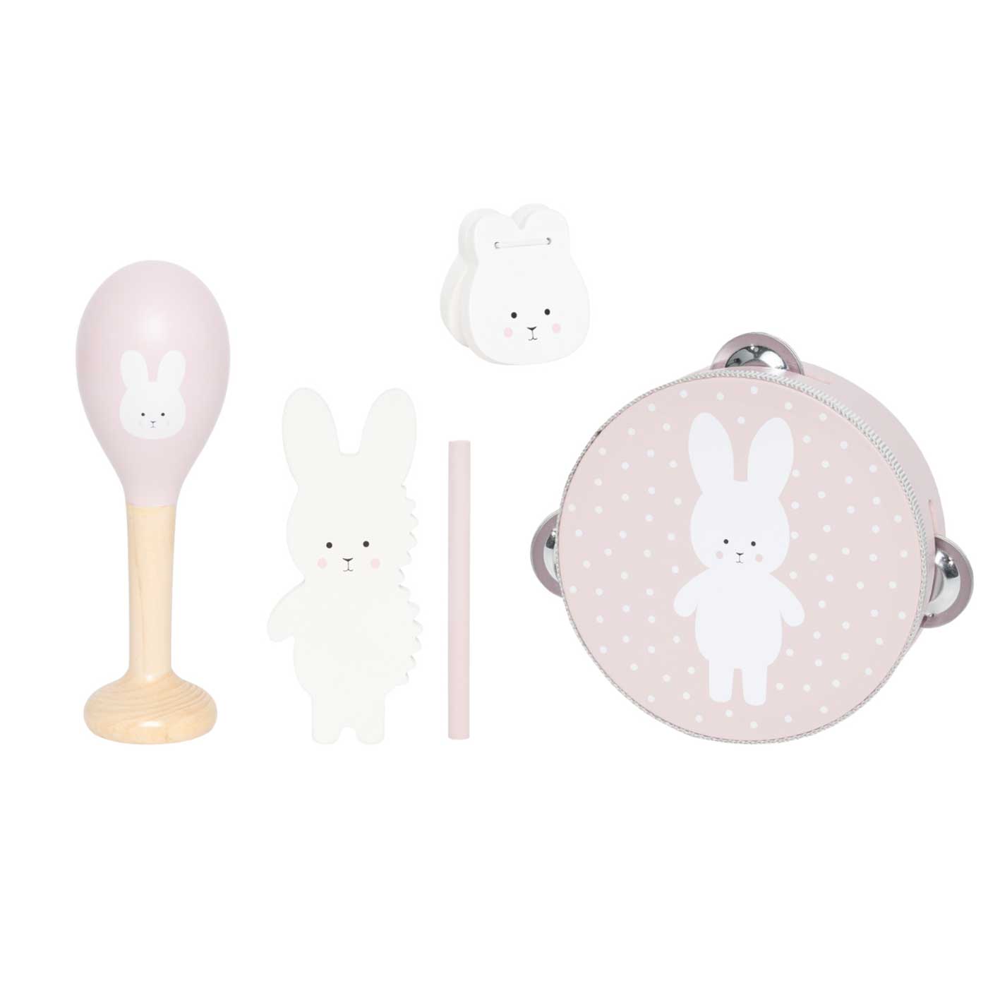 Alla instrument är dekorerade i mjuka, naturliga färger och pryds av det charmiga Bunny-ansiktet som gör musiken ännu roligare. Den stilrena designen passar både i barnrummet och som en fin present.