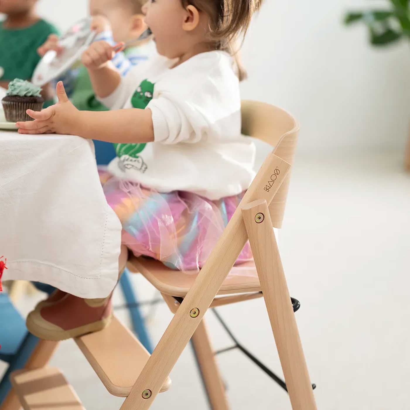 KAOS KLAPP® i färgen Natur är mycket mer än en barnstol – det är en designikon som följer ditt barn från nyfödd till vuxen (0–110 kg). Tillverkad i FSC-certifierat bokträ och med en tidlös skandinavisk formgivning är KLAPP® ett genomtänkt val för dig som vill ha både funktion, estetik och hållbarhet i vardagen.