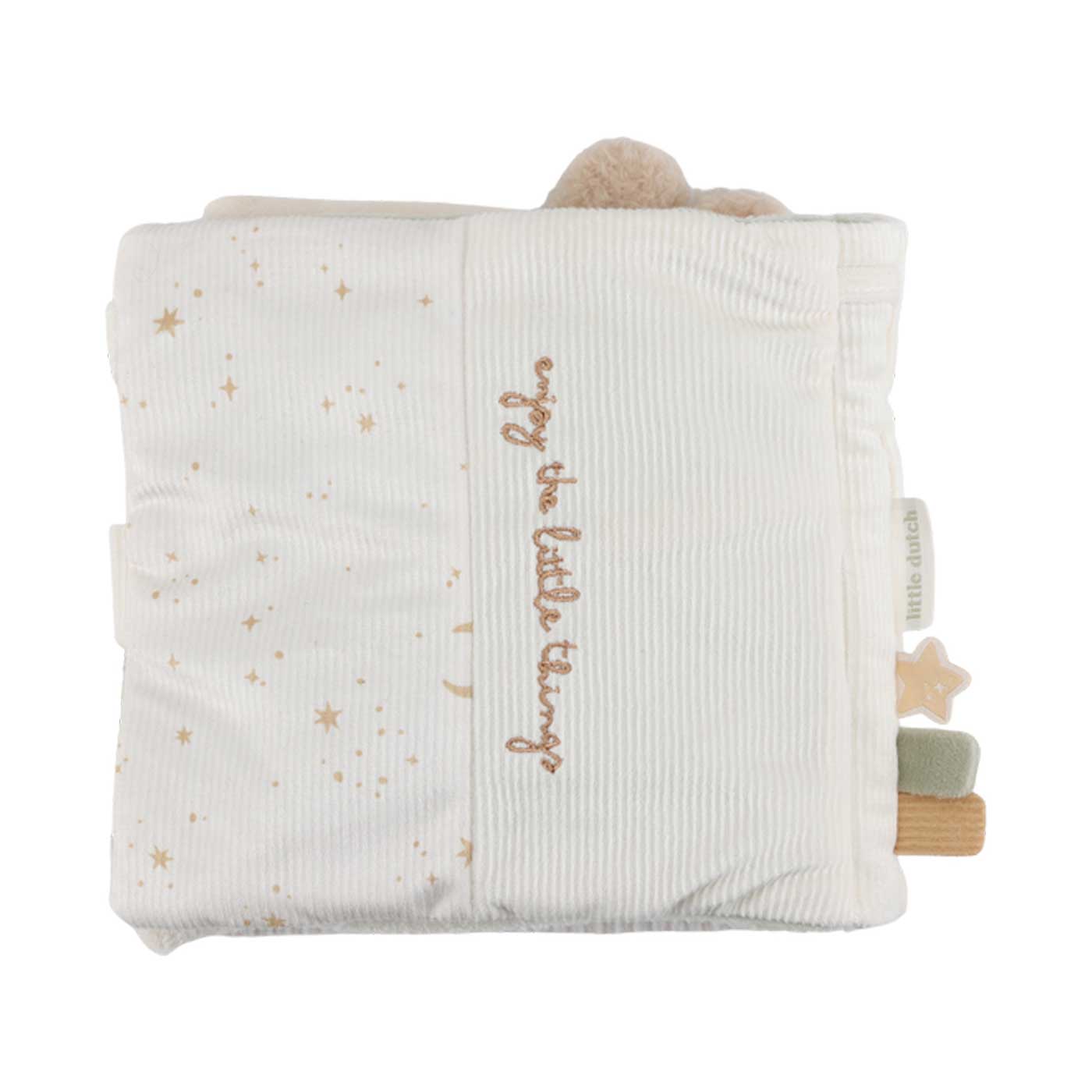 En mjuk och stimulerande tygbok från Little Dutch fylld med små överraskningar som väcker barnets nyfikenhet. Perfekt för att utforska, känna och upptäcka nya detaljer – sida för sida.