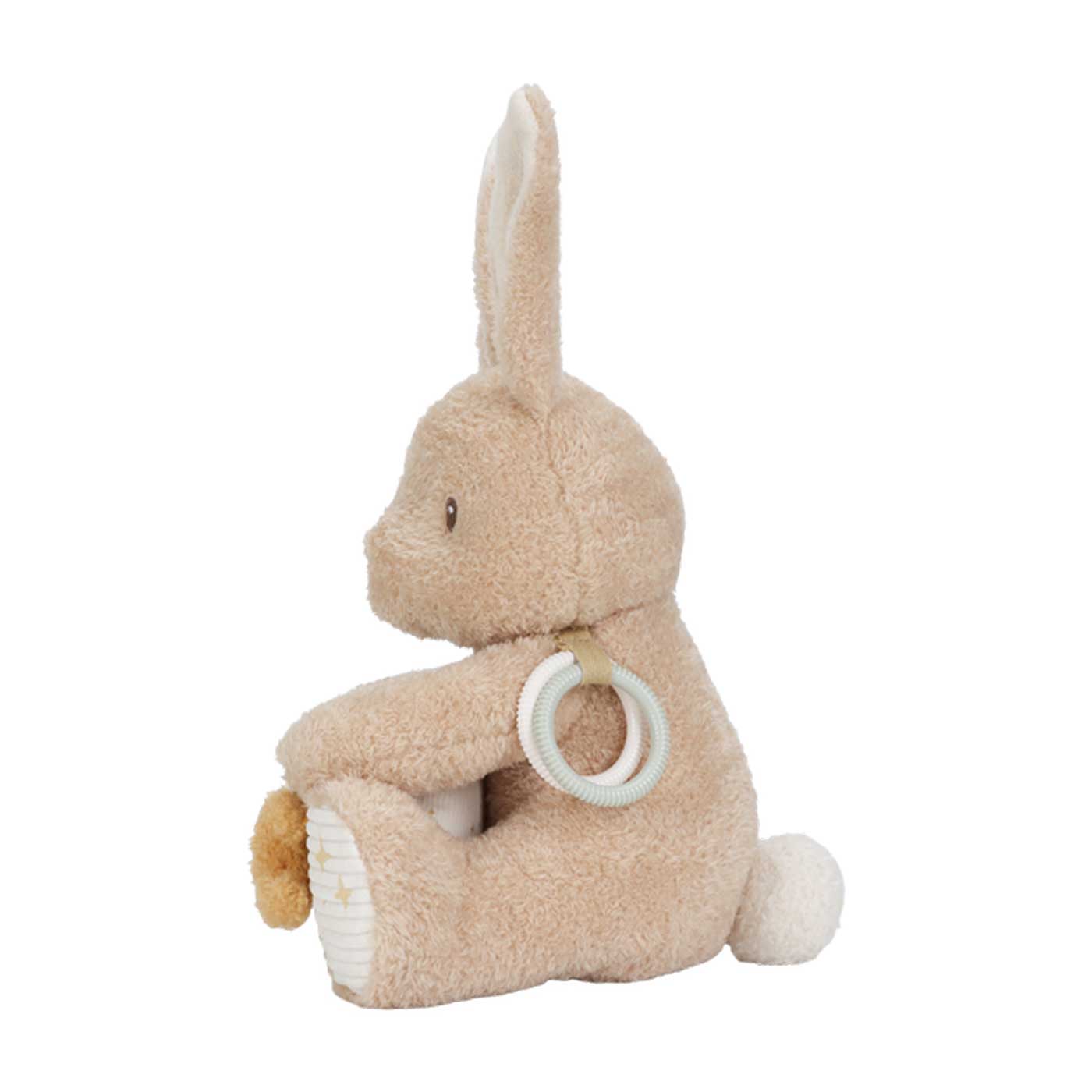 Little Dutch Aktivitetsnalle är fylld med små överraskningar som väcker barnets nyfikenhet. Den innehåller prasslande delar, skallrande ljud, mjuka material och lekfulla etiketter som bjuder in till lek och utforskande. Genom att greppa, känna och leka tränar barnet både finmotorik och sinnesförmåga på ett roligt och tryggt sätt.