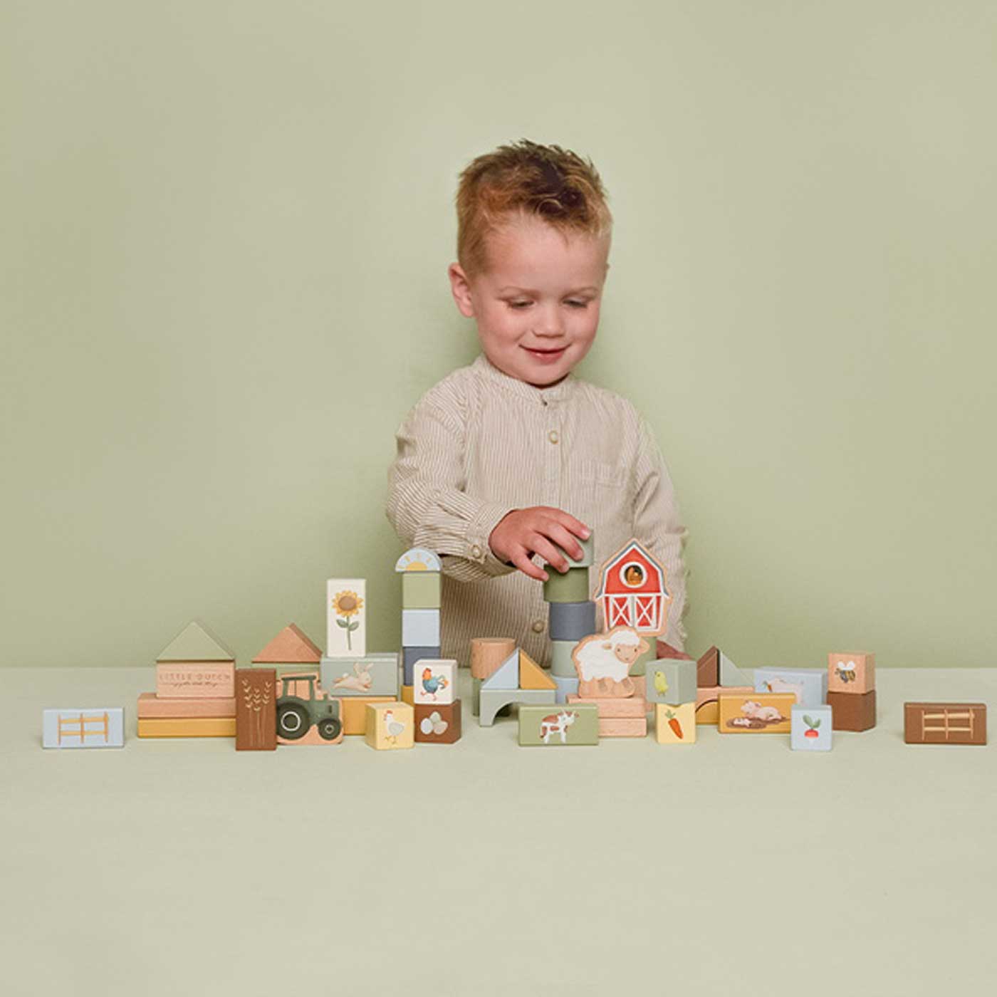 Barnet kan bygga allt från små byar till träd och skogsmiljöer – varje kloss blir en del av en ny berättelse. Genom att stapla, bygga och balansera tränas både hand-öga-koordination, koncentration och kreativt tänkande på ett lekfullt sätt.