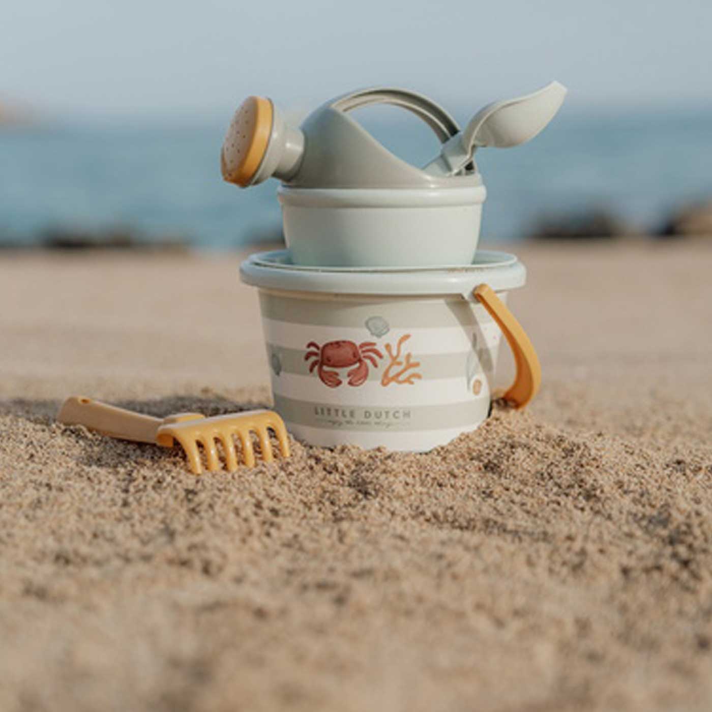 Skapa sommarens roligaste lekstunder med Little Dutch Hinkset Ocean World. Med fem små hinkar i ett charmigt havstema kan barnen gräva, fylla och bygga i sand eller leka med vatten. Den kompakta storleken på 9,5 cm är enkla för små händer att använda. Ett perfekt set för stranden, trädgården eller sandlådan.