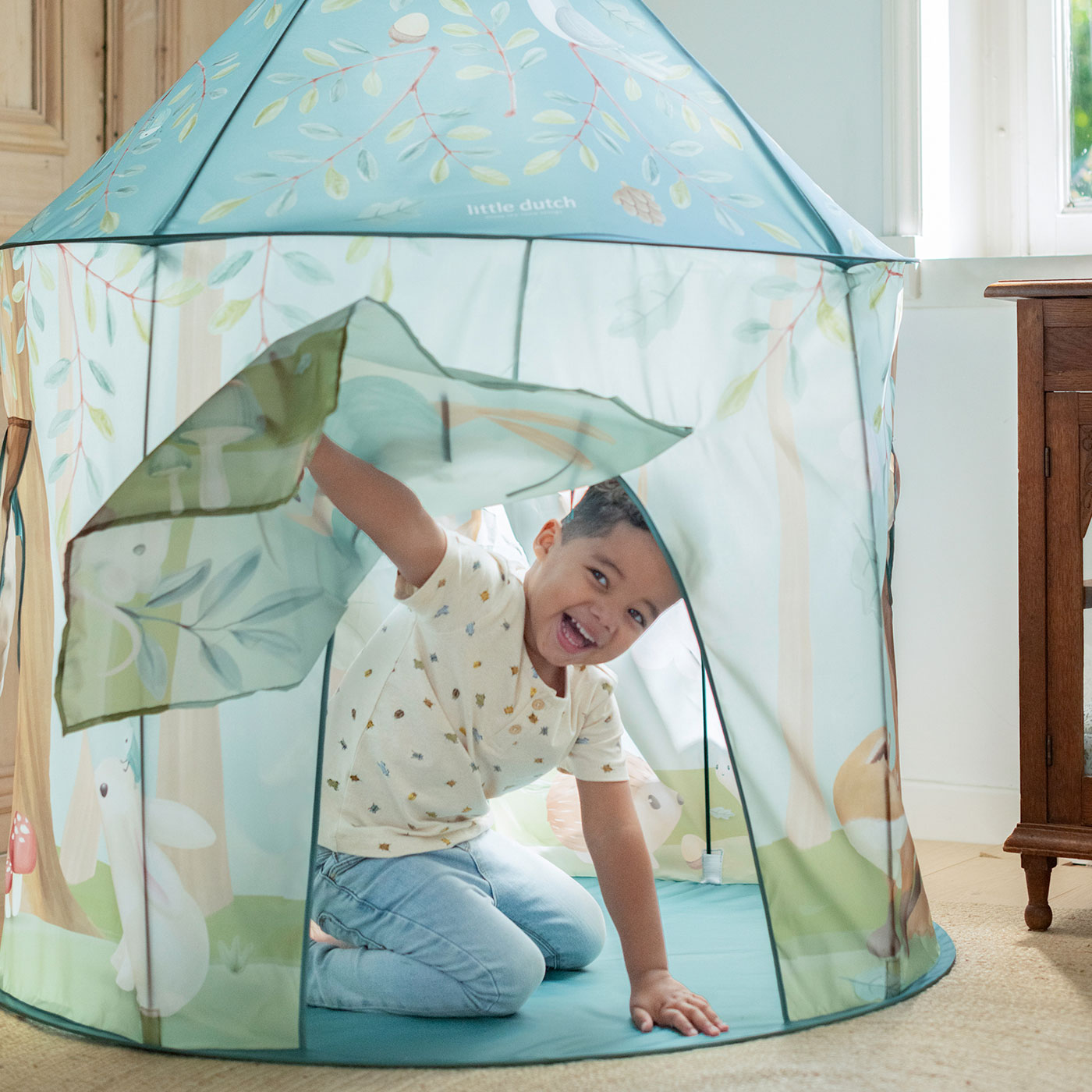 Skapa en drömlik plats för lek, vila och fantasi med Little Dutch Lektält Blå Forest Friends. Det här underbara lektältet från Little Dutch bjuder in till timmar av kreativ lek och mysiga stunder – perfekt för barnrummet, vardagsrummet eller utomhus under soliga dagar.
