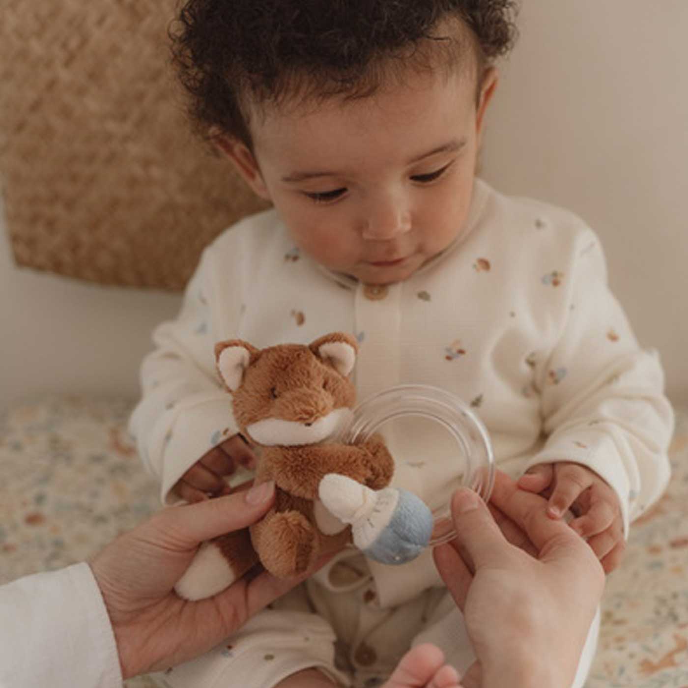 Den mjuka räven från Little Dutch är en perfekt följeslagare för barnets allra första upptäckter. Med sin lena päls, gulliga lilla svans och snälla uttryck bjuder den in till lek och skratt. Skallran är utformad för små händer att greppa, snurra och skaka – en rolig start på barnets resa mot att utforska världen.