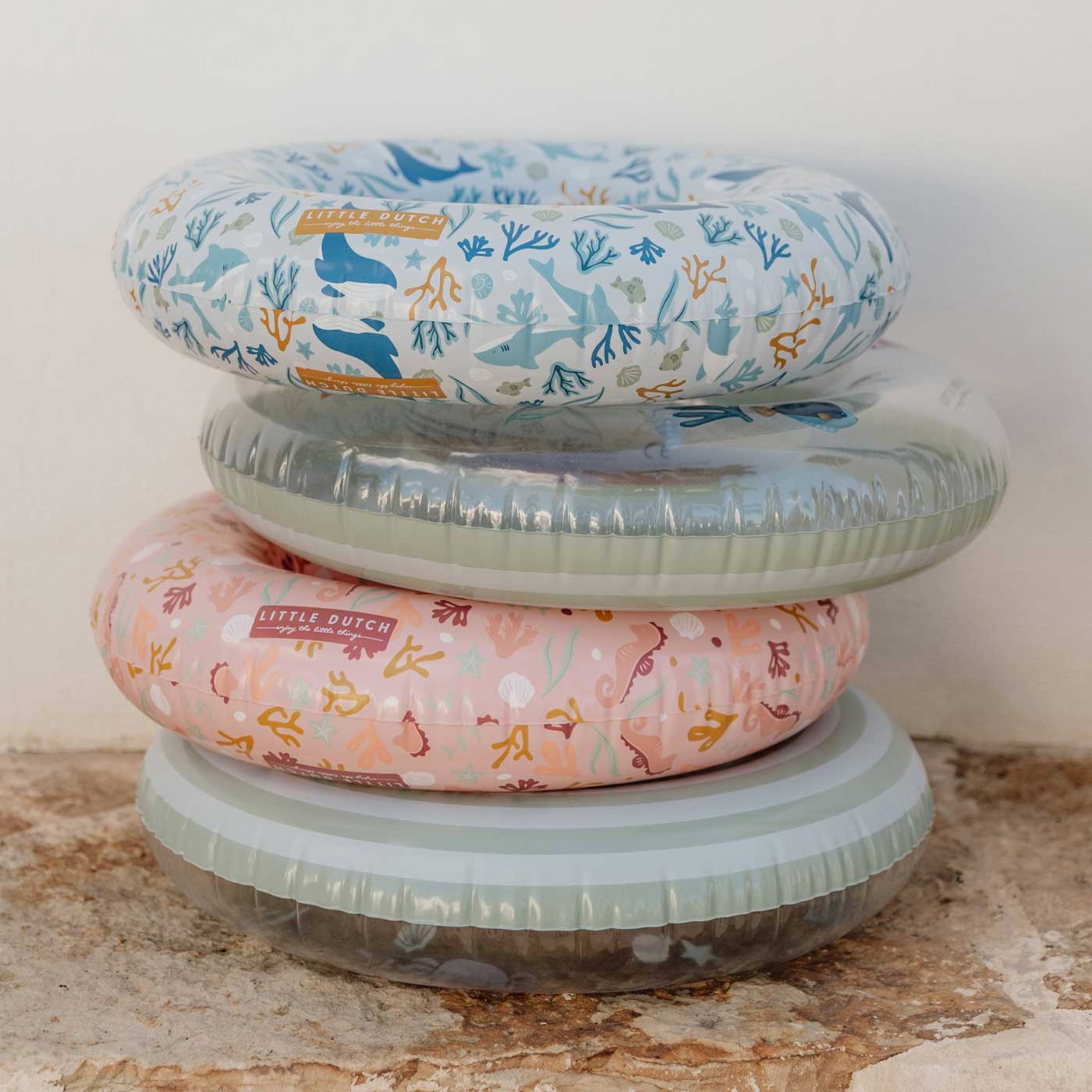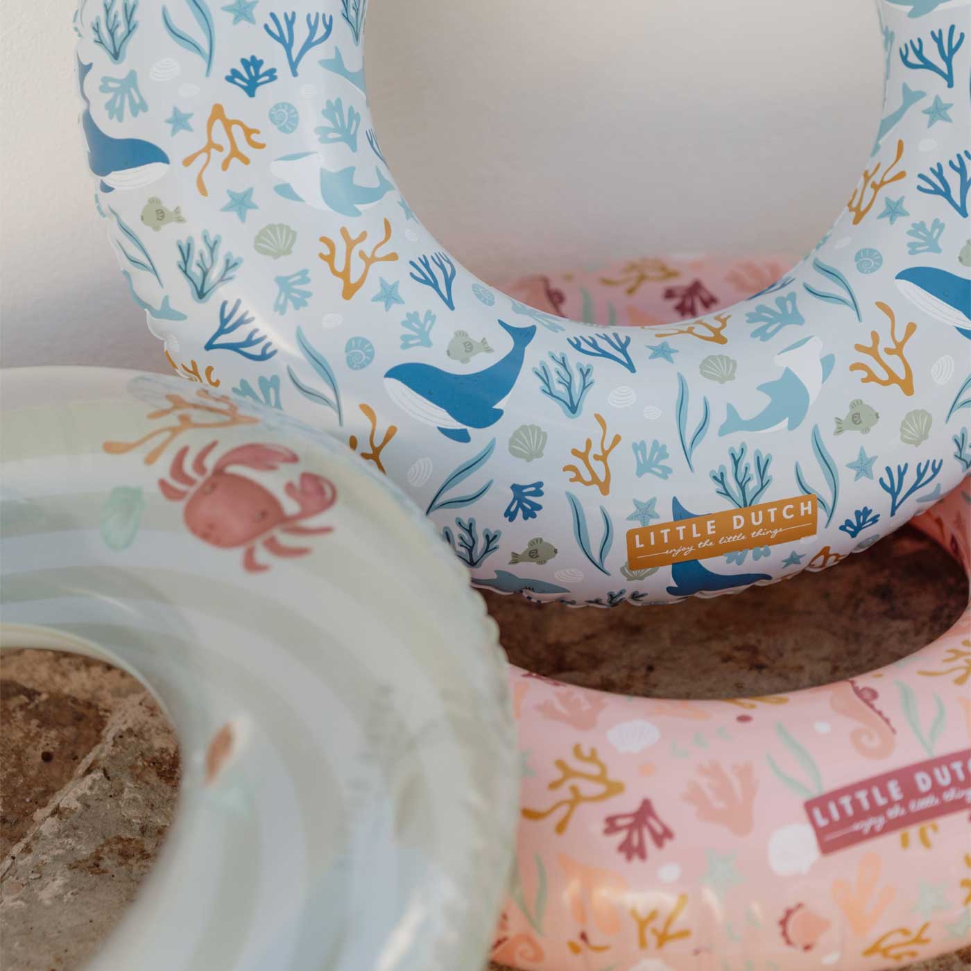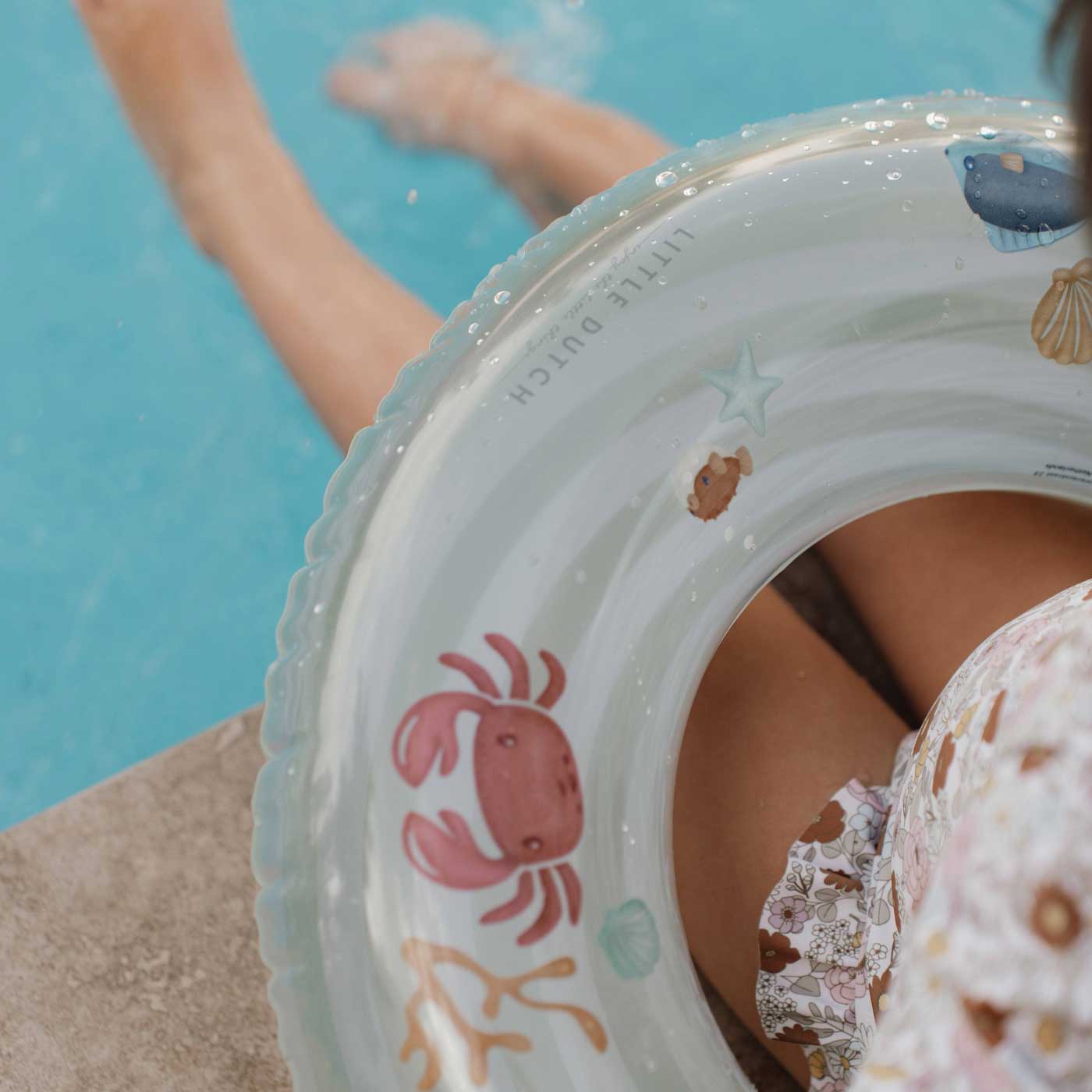 En somrig badring från Little Dutch gör vattenleken både trygg och rolig. Med sitt fina mönster, Fresh Greens, blir den snabbt en favorit bland barnen under soliga dagar vid pool och strand.