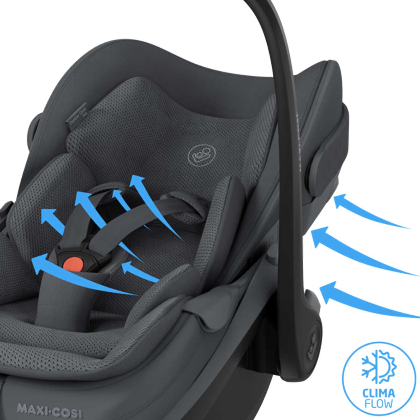 Tre justerbara lutningslägen, inklusive fullt liggläge, gör att barnet alltid kan sitta bekvämt eller vila ostört. Det medföljande newborn-inlägget ger extra stöd för de allra minsta, medan ClimaFlow-teknologin säkerställer en behaglig temperatur med god luftcirkulation. Den stora solskärmen skyddar mot både sol, vind och väder, perfekt för alla utflykter.
