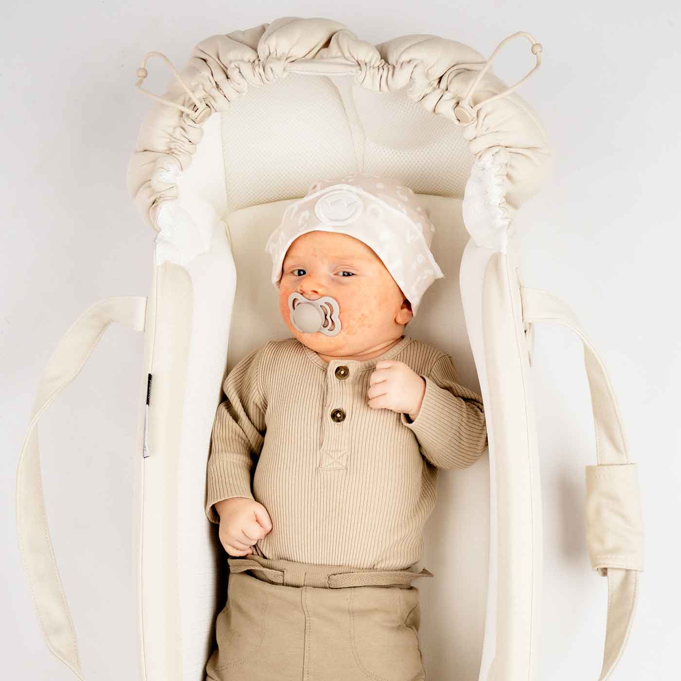 Najell Babynest SleepCarrier X Oat Beige är ett beiget babynest med flera olika användningsmöjligheter, och som är gjort för att bära med sig var du än går.