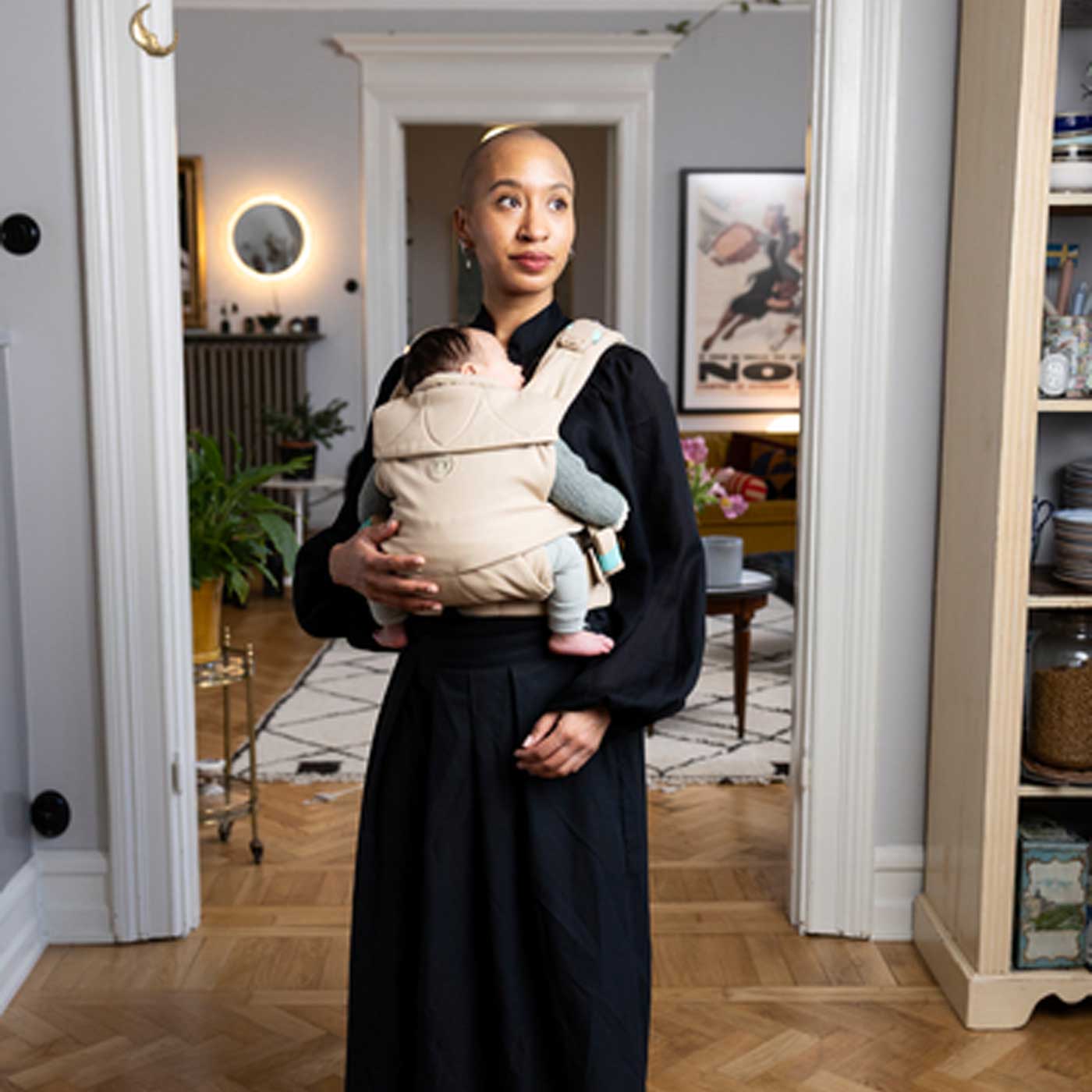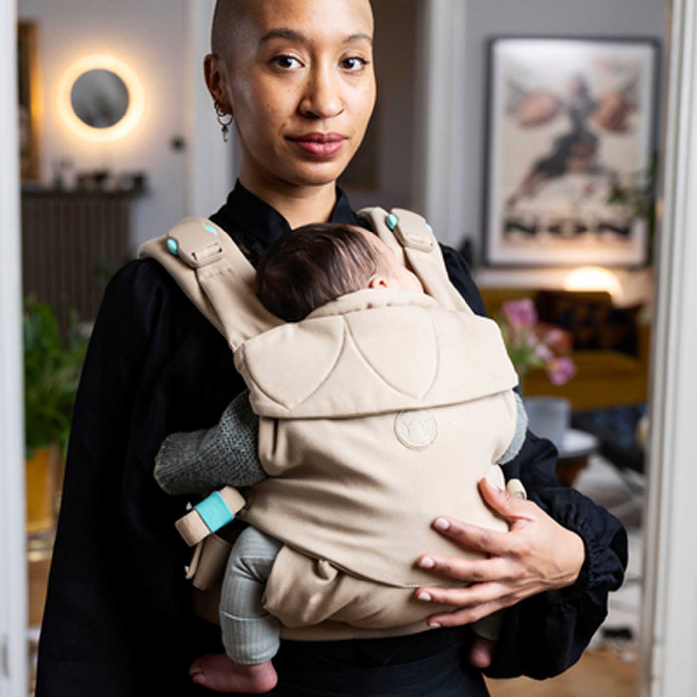 Med magnetiska spännen blir på- och avtagning enkel och intuitiv – perfekt när du har händerna fulla. Det andningsbara materialet håller både dig och barnet svala och bekväma, även under längre stunder av bärande.