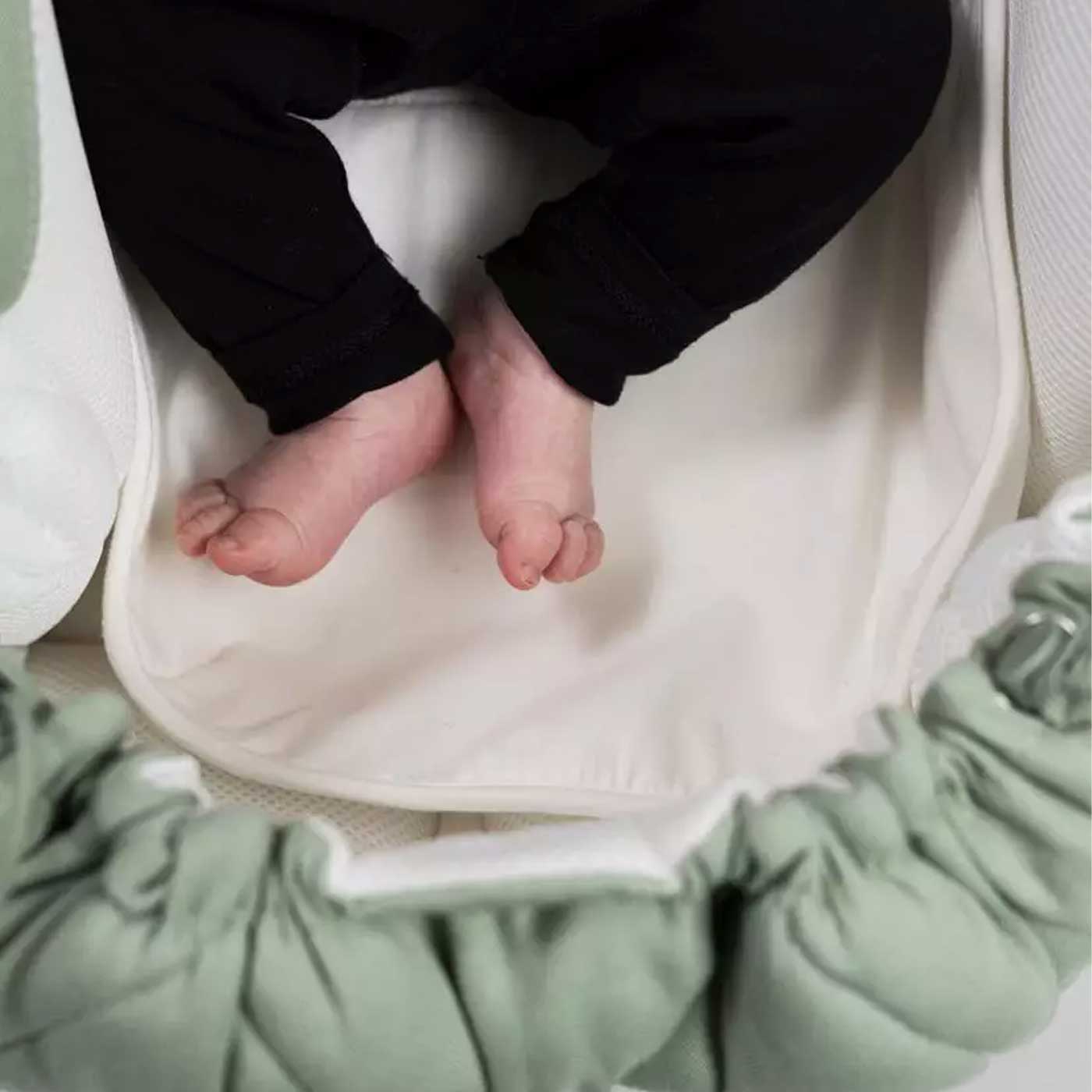 Madrasskyddet är enkelt att tvätta och torkar på studs, och gör att du inte behöver tvätta hela babynestet så fort det sker en olycka. Att inte behöva tvätta produkten lika ofta är inte bara bra för miljön, det gör också att tyger och material håller längre. Det gör att du kan fortsätta använda den dag för dag, år er efter år. Och sedan lämna över den till nästa generation.