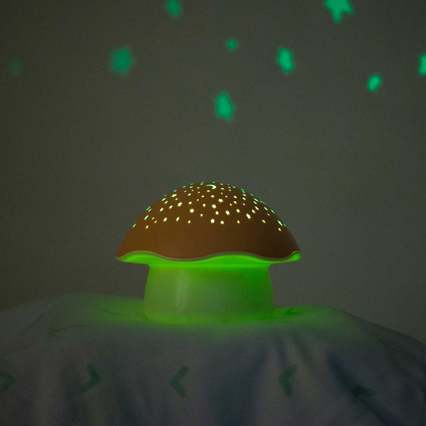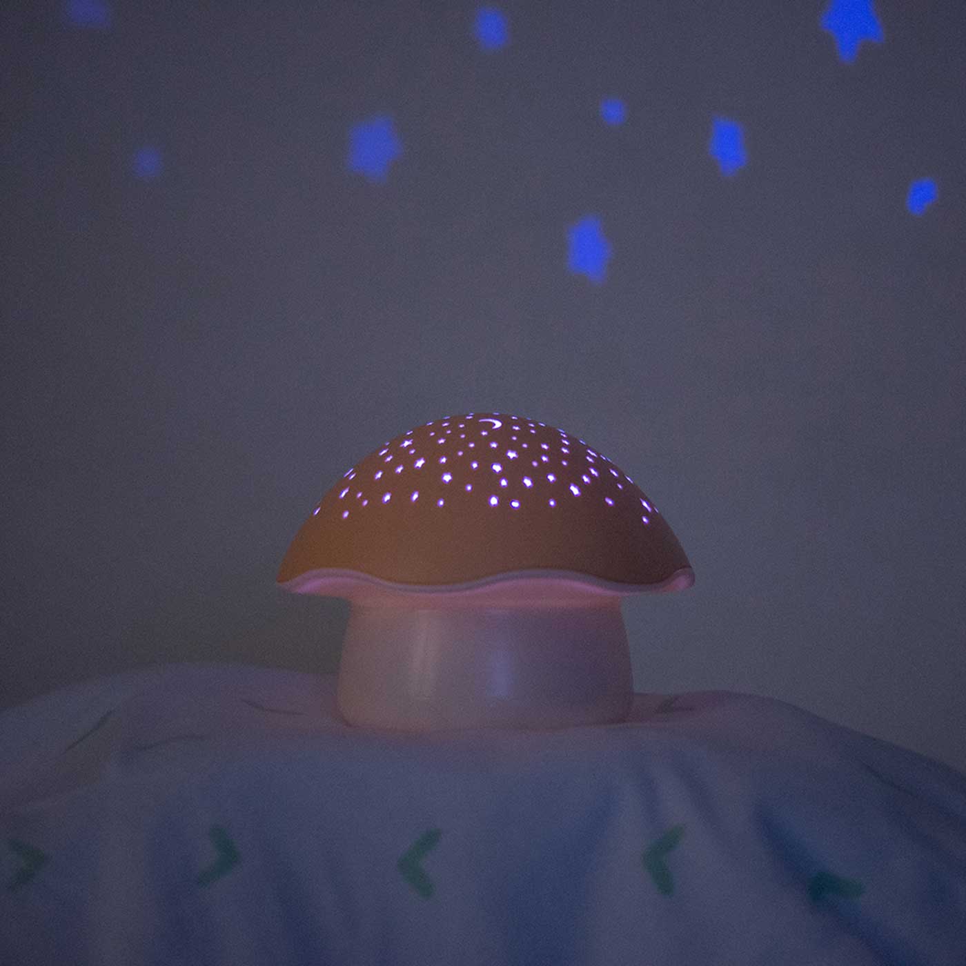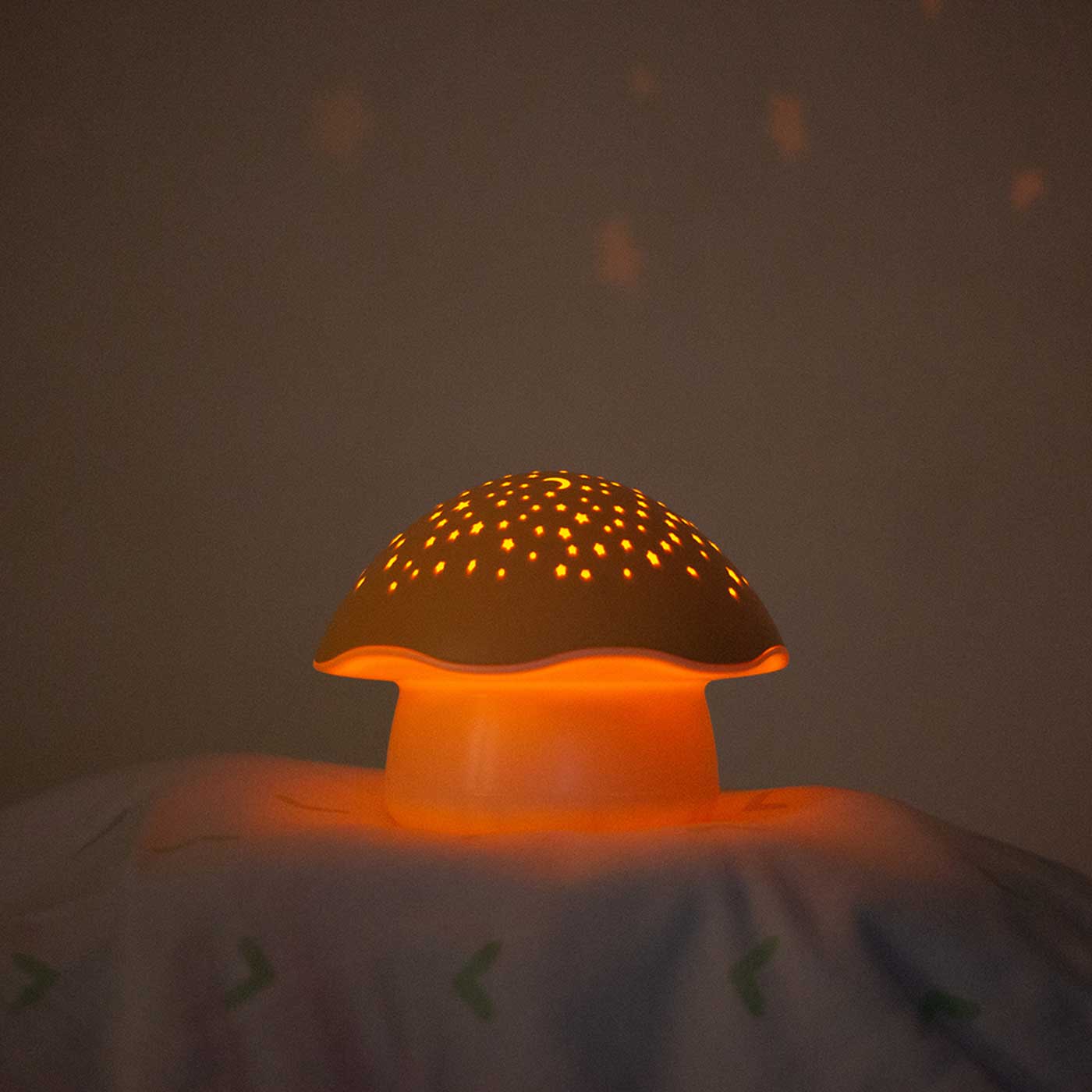 Pabobo Stjärnprojektor Svamp Orange är en mysig och rogivande nattlampa som förvandlar barnrummet till en magisk stjärnhimmel. Lampan projicerar ett vackert stjärnmönster i taket som kan växla långsamt mellan blått, grönt och orange eller ställas på ett fast ljus.