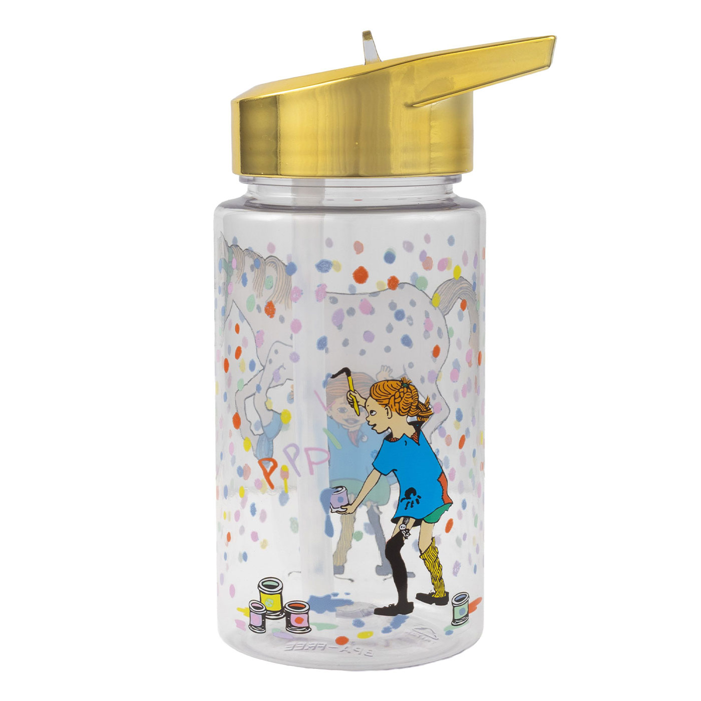 Lekfull Pippi Långstrump vattenflaska med sugrör och flip-pip.