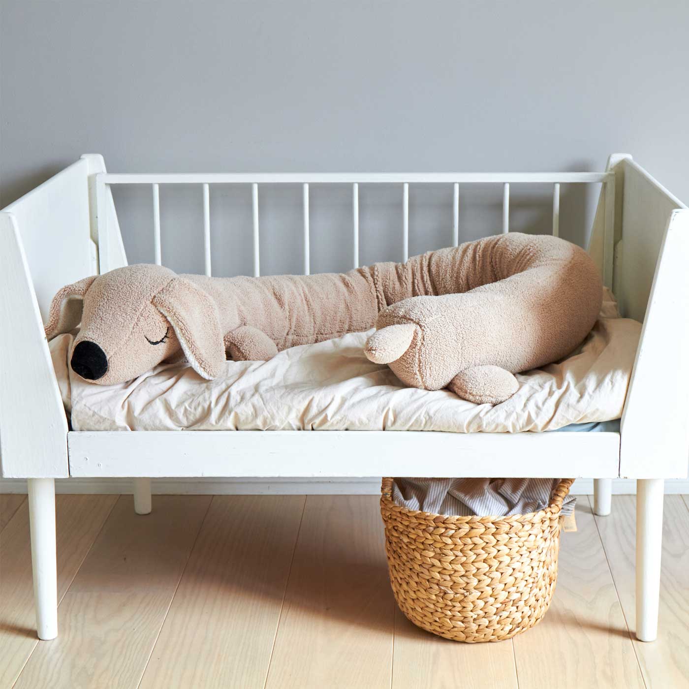 Den är tillverkad med omtanke och har en mysig, taktil känsla som gör den perfekt som både sovkompis och inredningsdetalj i barnrummet.