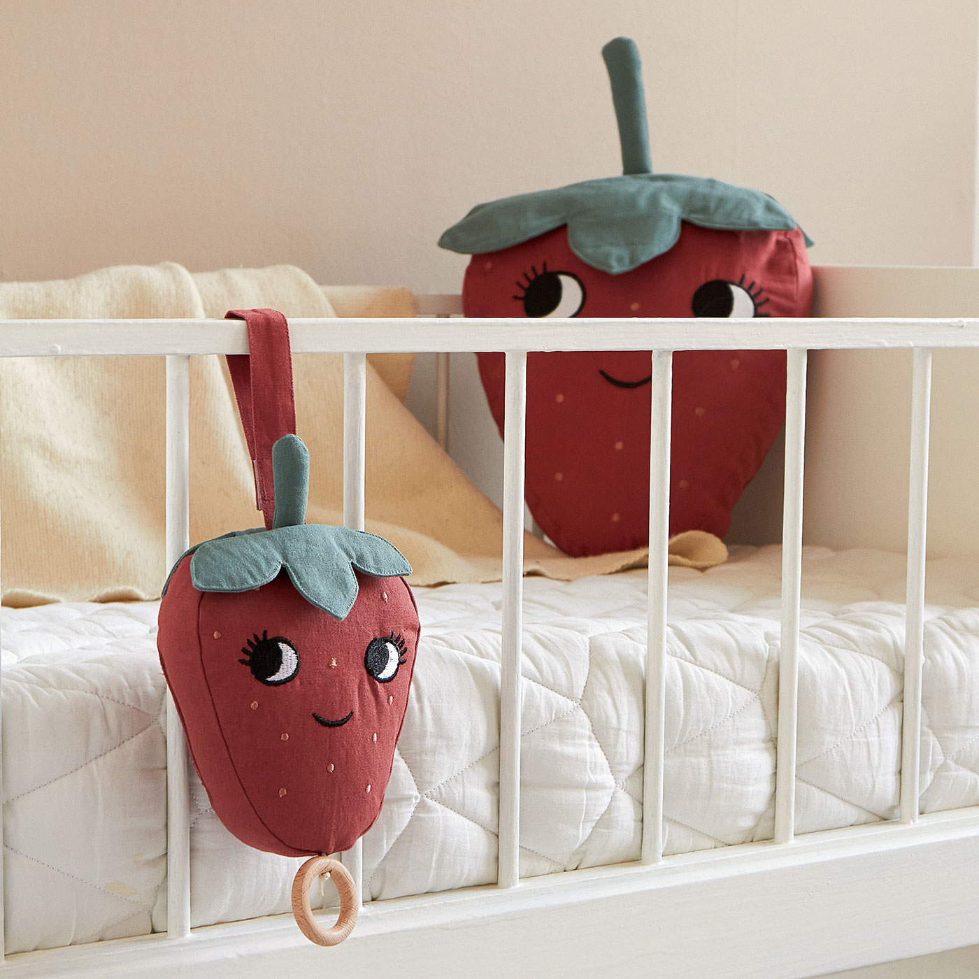 Roommate Speldosa Jordgubbe är en mysig och melodisk vän för de allra minsta som hjälper till att skapa lugn och harmoni inför vila och sömn. Med sitt lekfulla jordgubbsmotiv blir den både en charmig inredningsdetalj i barnrummet och en trygg följeslagare vid säng, spjälsäng eller vagn.
