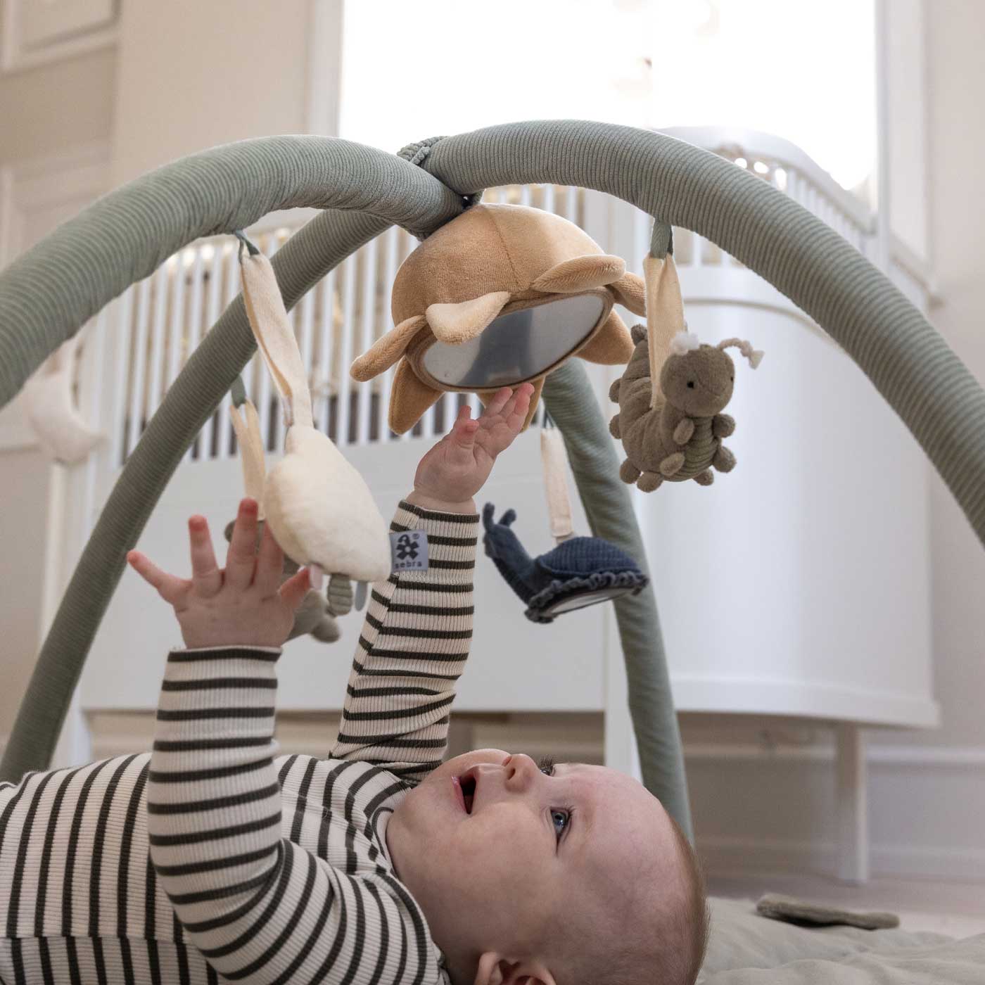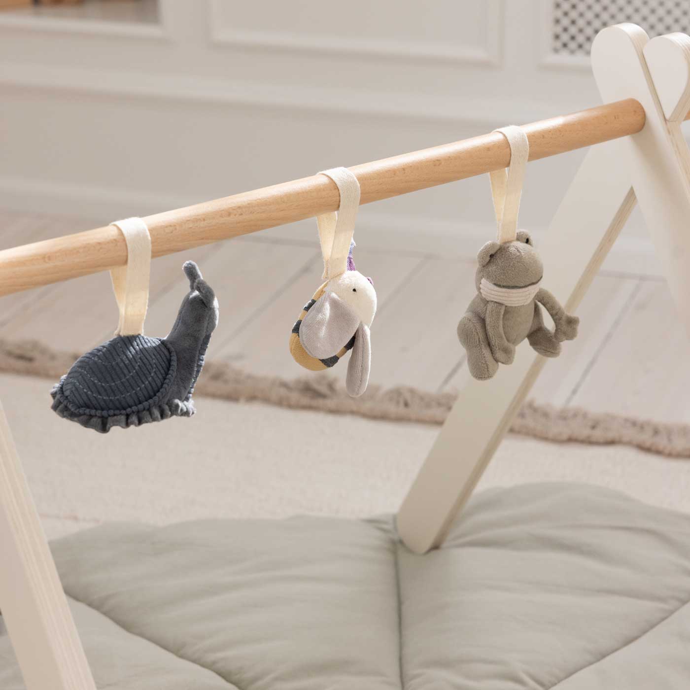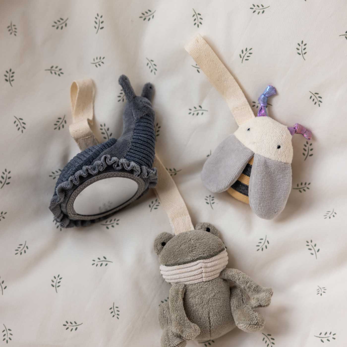 De små figurerna är perfekta för små händer att utforska och hjälper till att träna både motorik och sinnen. Fäst dem på babygymmet, vagnen eller babyskyddet för underhållning hemma och på språng. Passar från nyfödd.