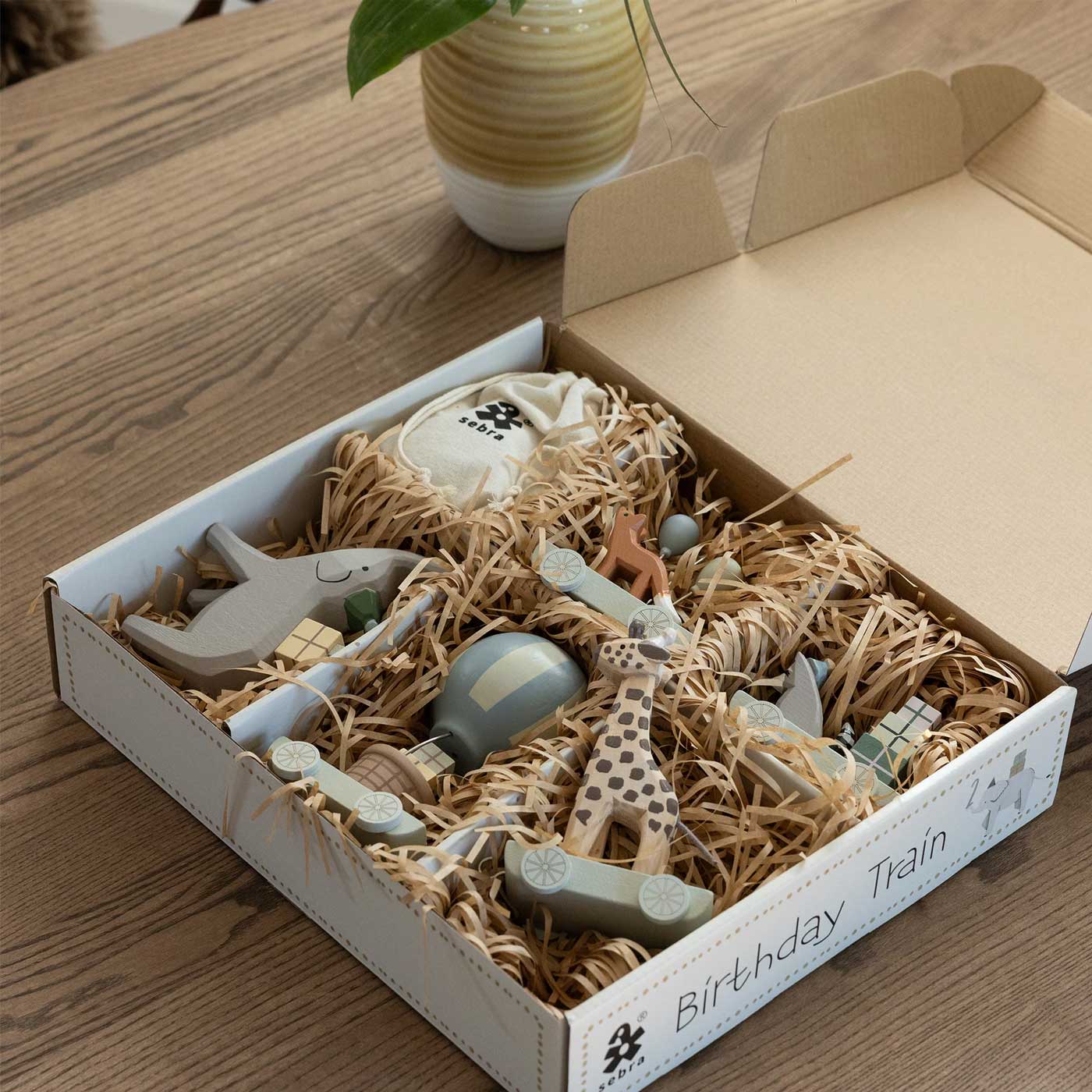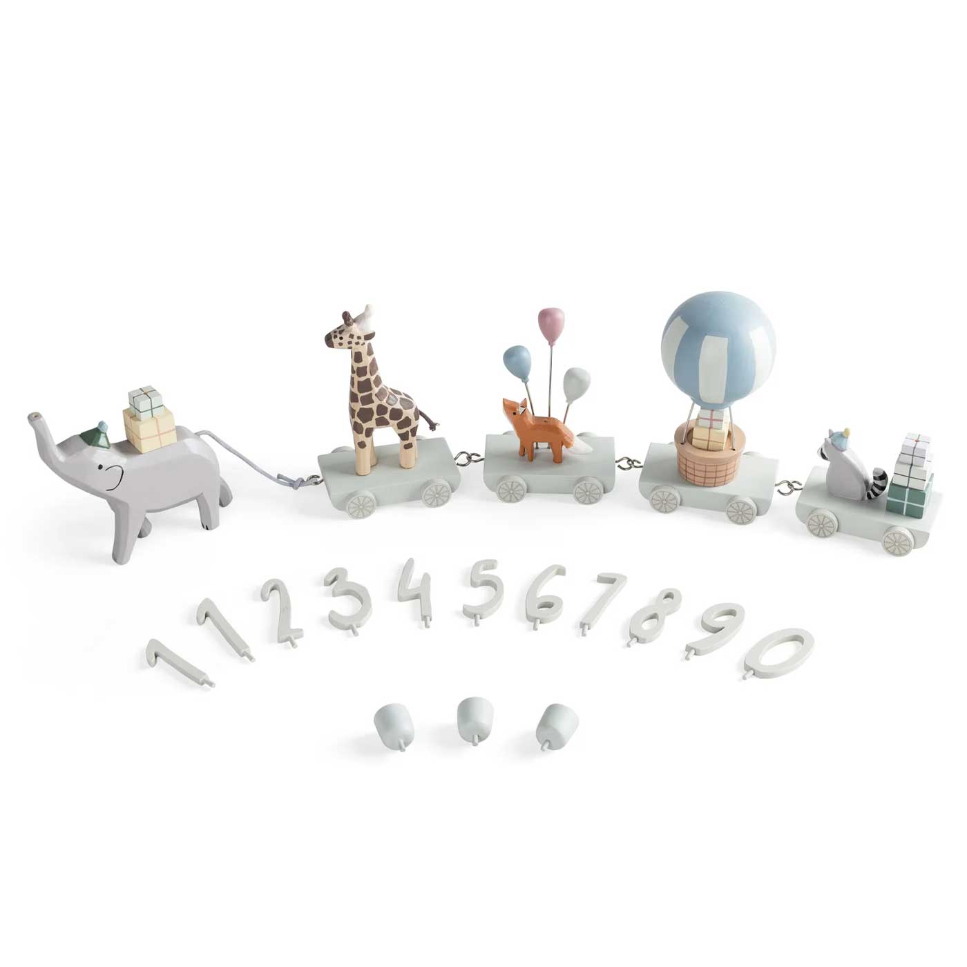 Skapa en minnesvärd tradition med Sebra Födelsedagståg, ett charmigt tåg i trä med söta djurvagnar som dras av en ståtlig elefant med snabeln högt upp. Perfekt som dekoration vid barnets födelsedag eller dop.