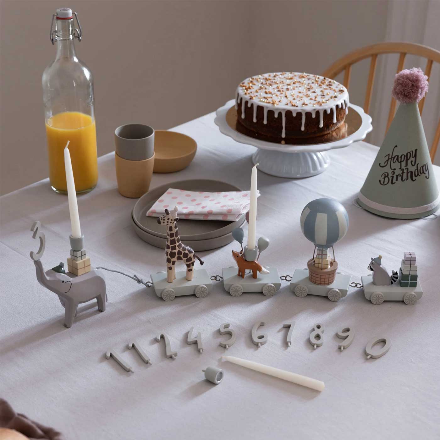 Placera tåget på bordet vid varje födelsedag för att skapa en speciell tradition som barnen kommer att minnas. När det inte används kan tåget förvaras tryggt i den medföljande lådan.