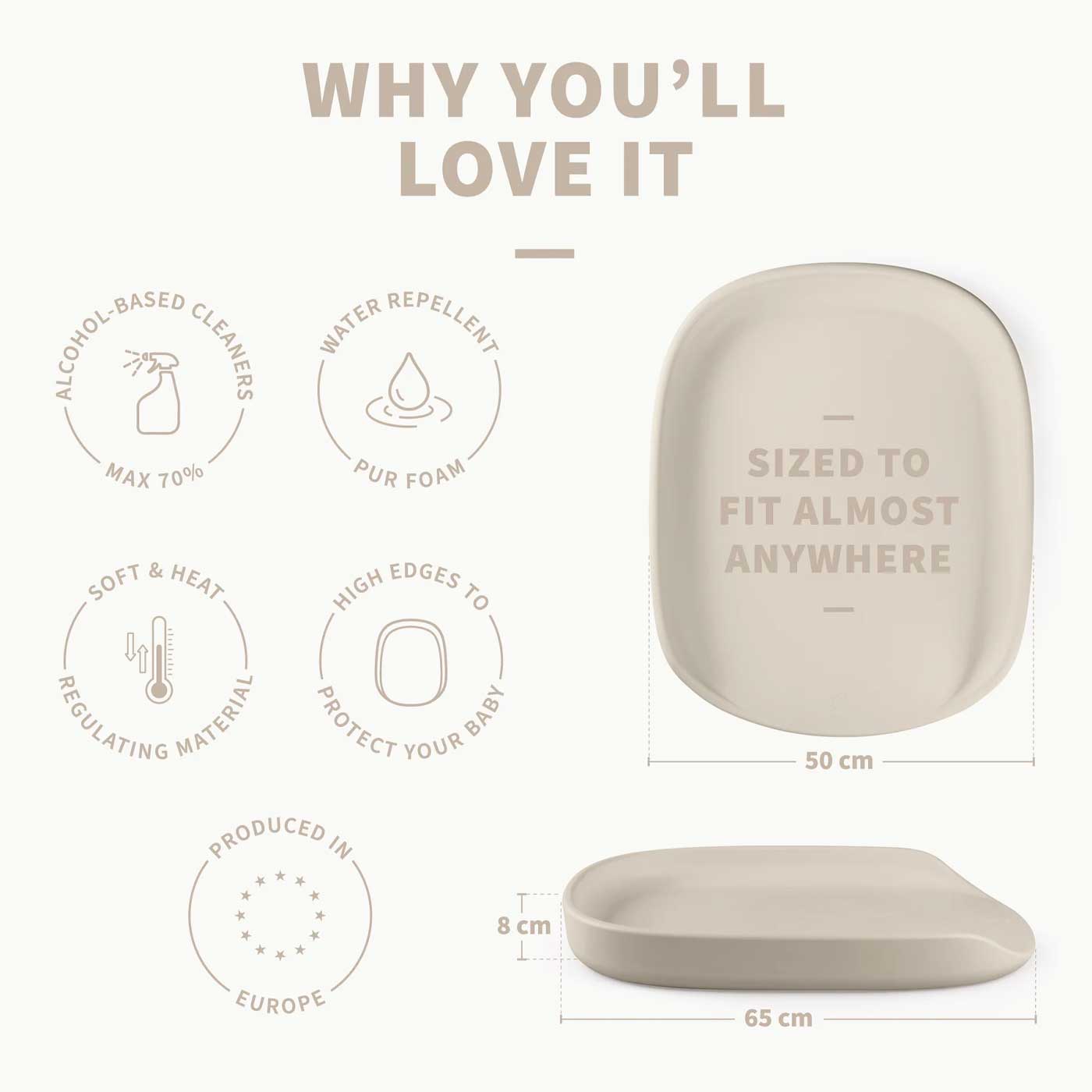 Gör blöjbyten enklare och mer bekväma med Sebra Skötbädd i Seabreeze Beige. Med sitt tidlösa, skandinaviska uttryck passar den stilrena skötdynan perfekt på Sebras skötbord eller andra ytor i barnrummet.