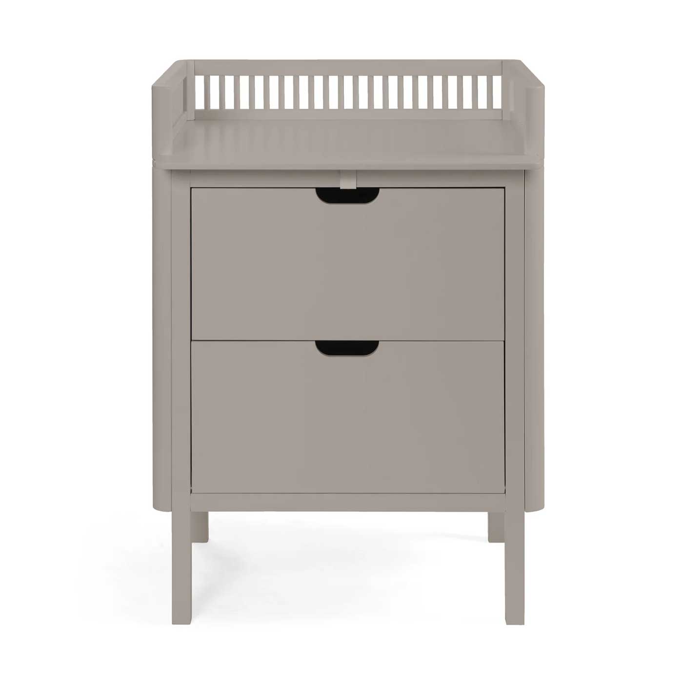 Skötbordet består av en rymlig byrå med avtagbar skötbordstopp. När blöjperioden är över kan skötbädden enkelt tas bort, och möbeln fortsätter som en praktisk förvaringslösning för kläder, leksaker eller andra saker.