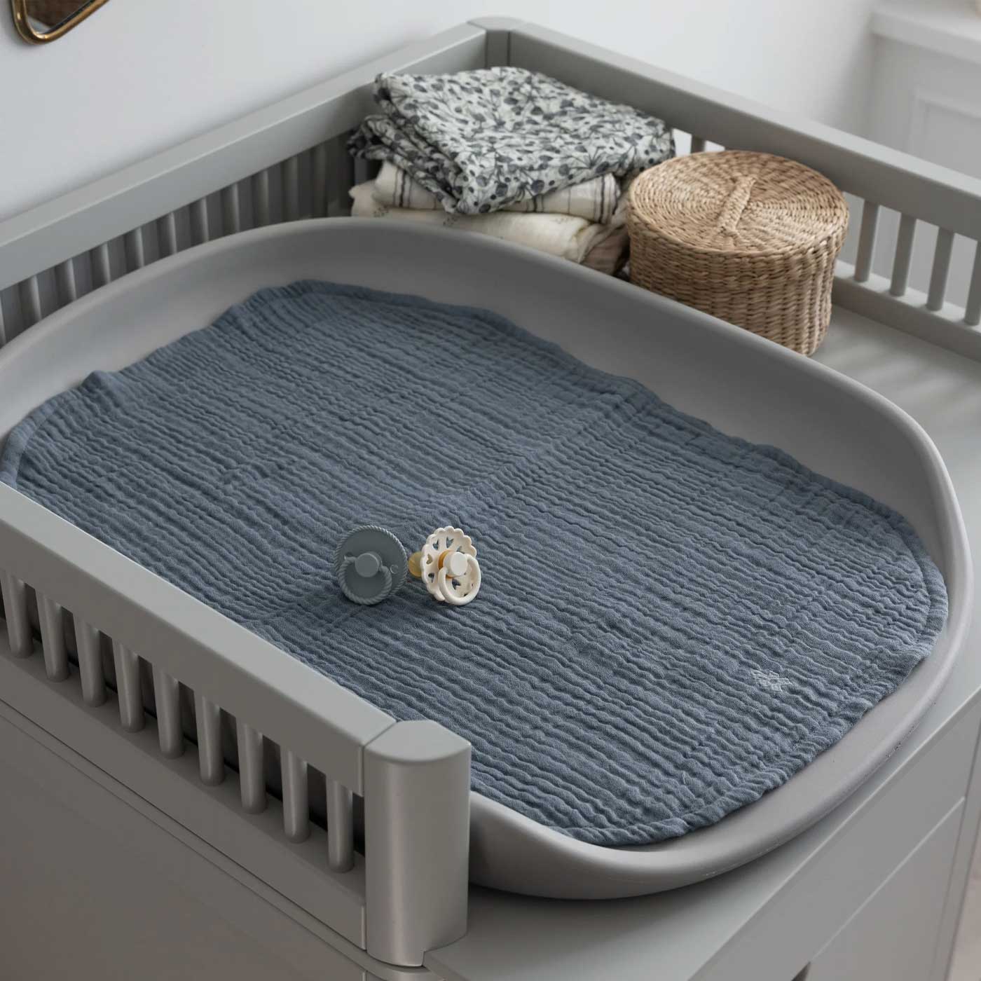 Gör blöjbyten mjukare och bekvämare med Sebra skötunderlägg i GOTS-certifierad ekologisk bomullsmuslin. Setet innehåller två mjuka skötunderlägg som är perfekt anpassade för Sebras skötbädd och skapar en extra mjuk och värmande yta för ditt barn.